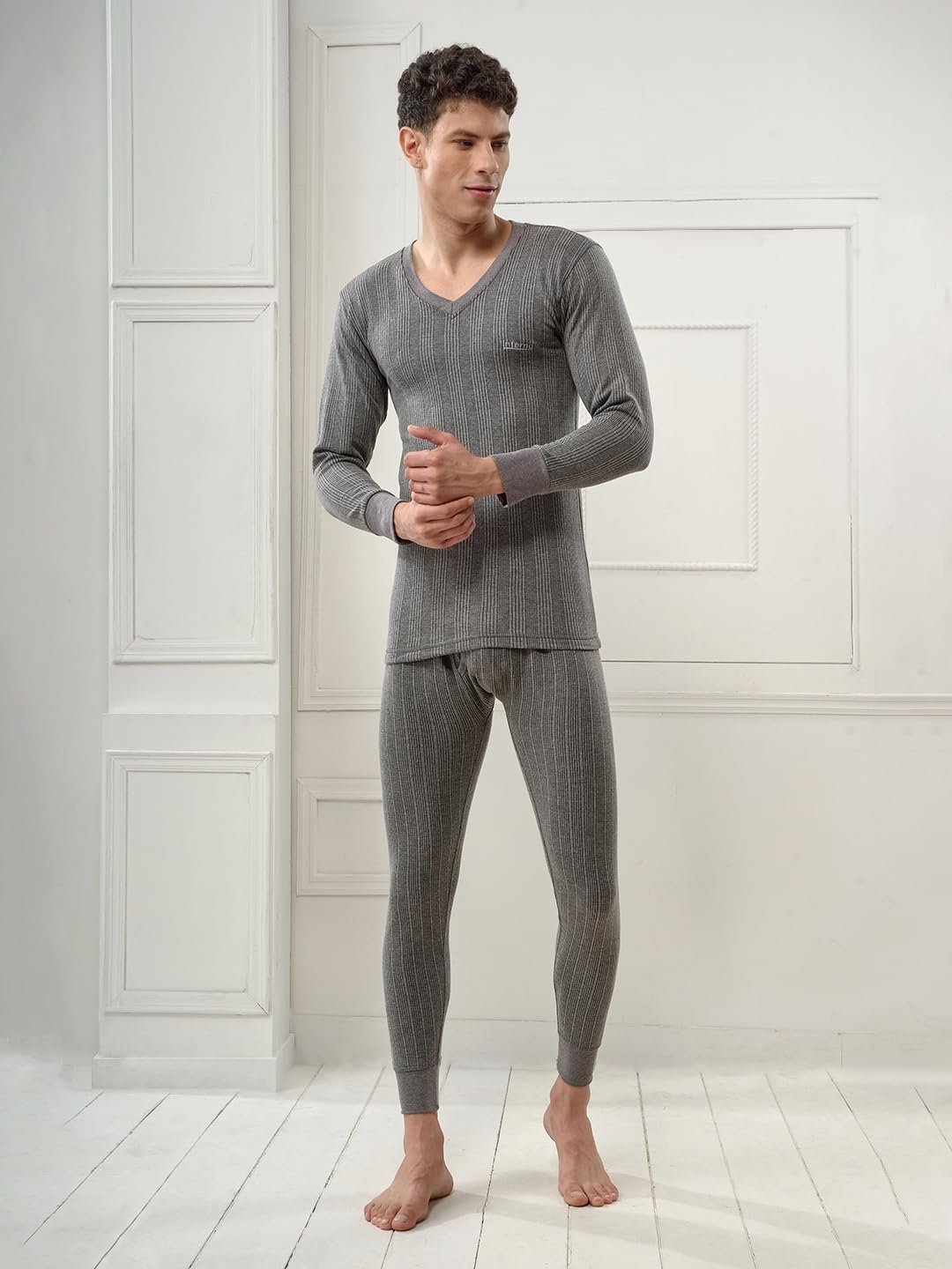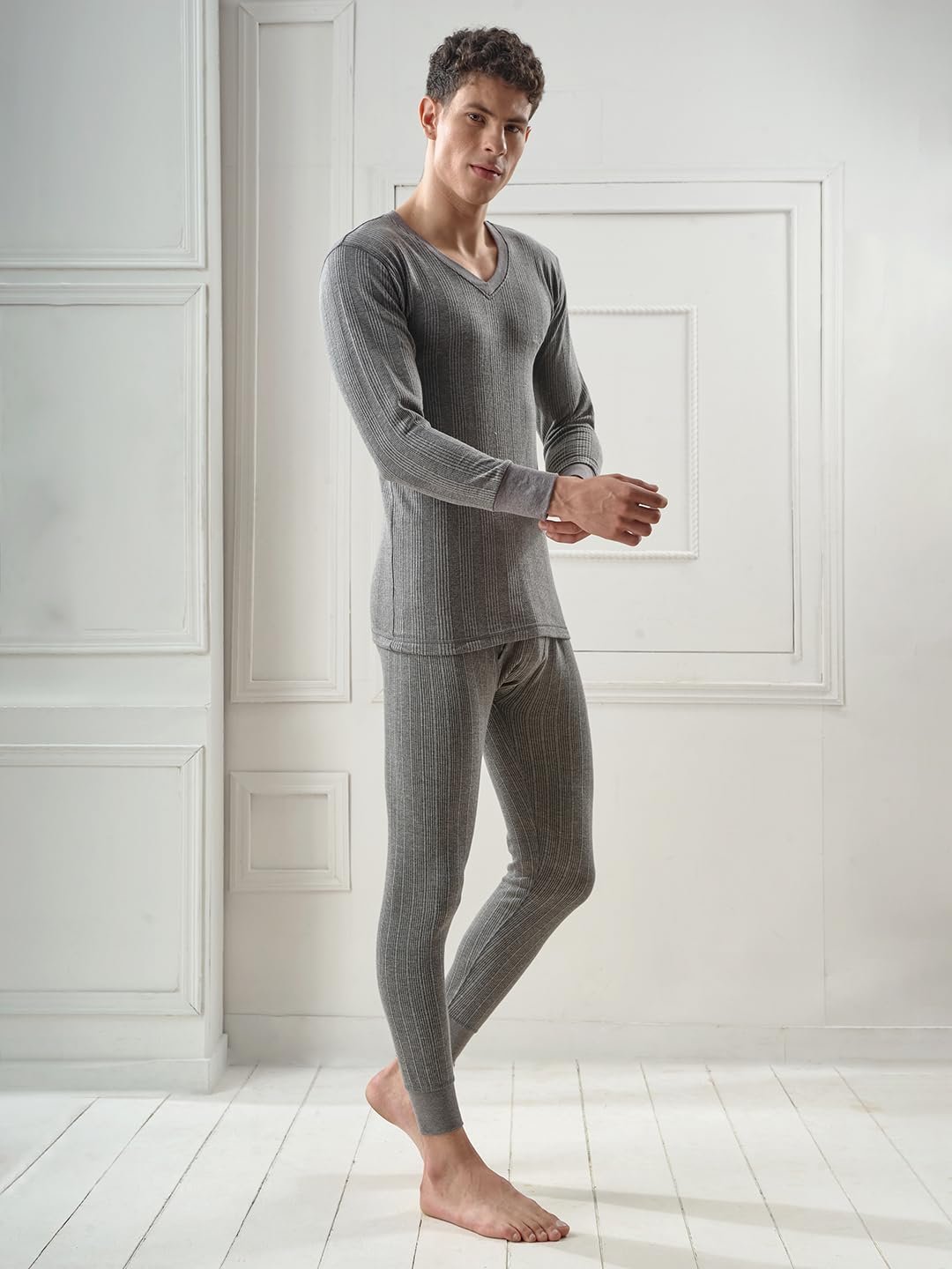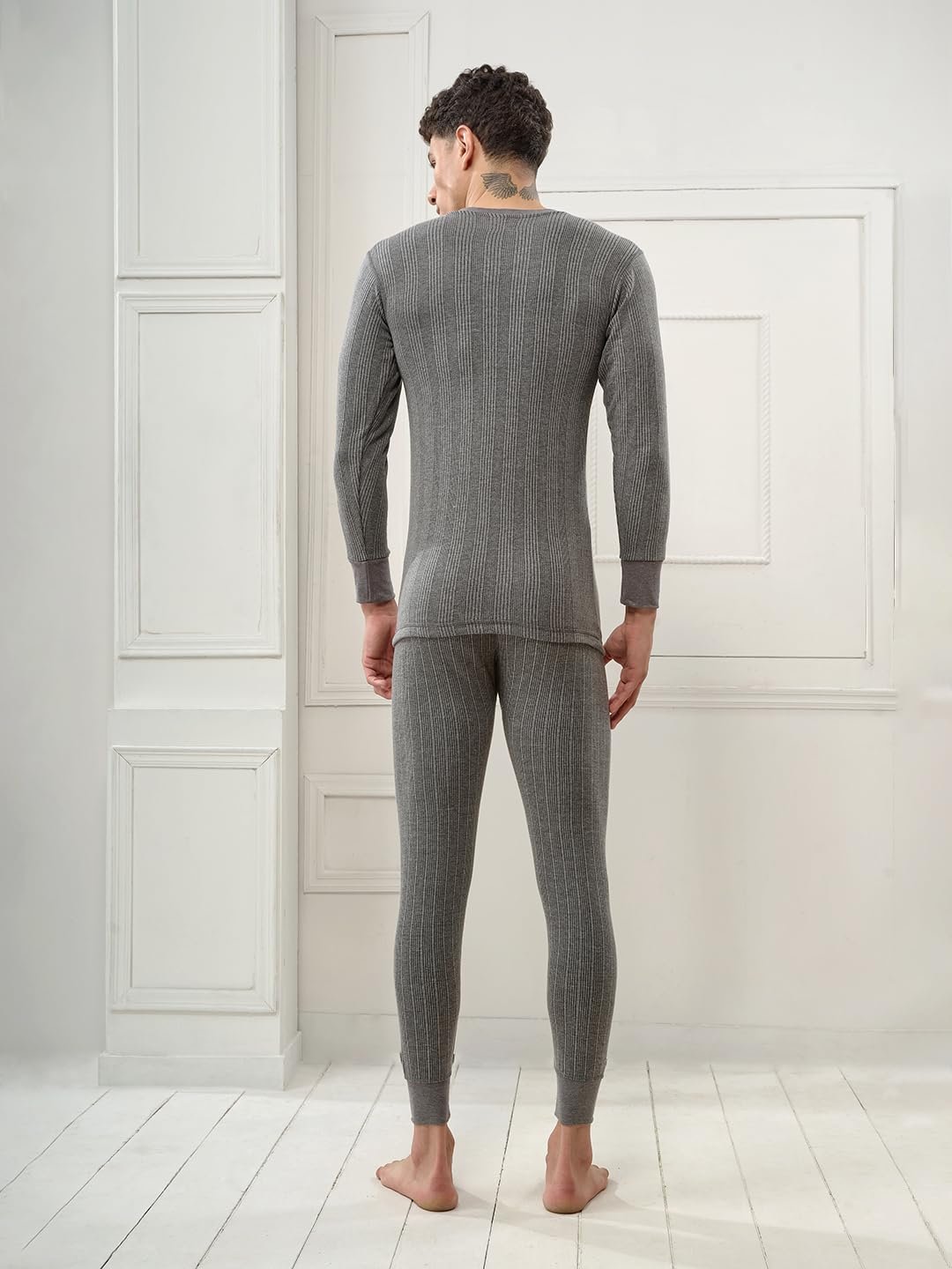 Lux Inferno Mens Cotton Thermal Set (INFERNO_CH_FS_VN_TRO_SET_85_Charcoal Melange_Medium)