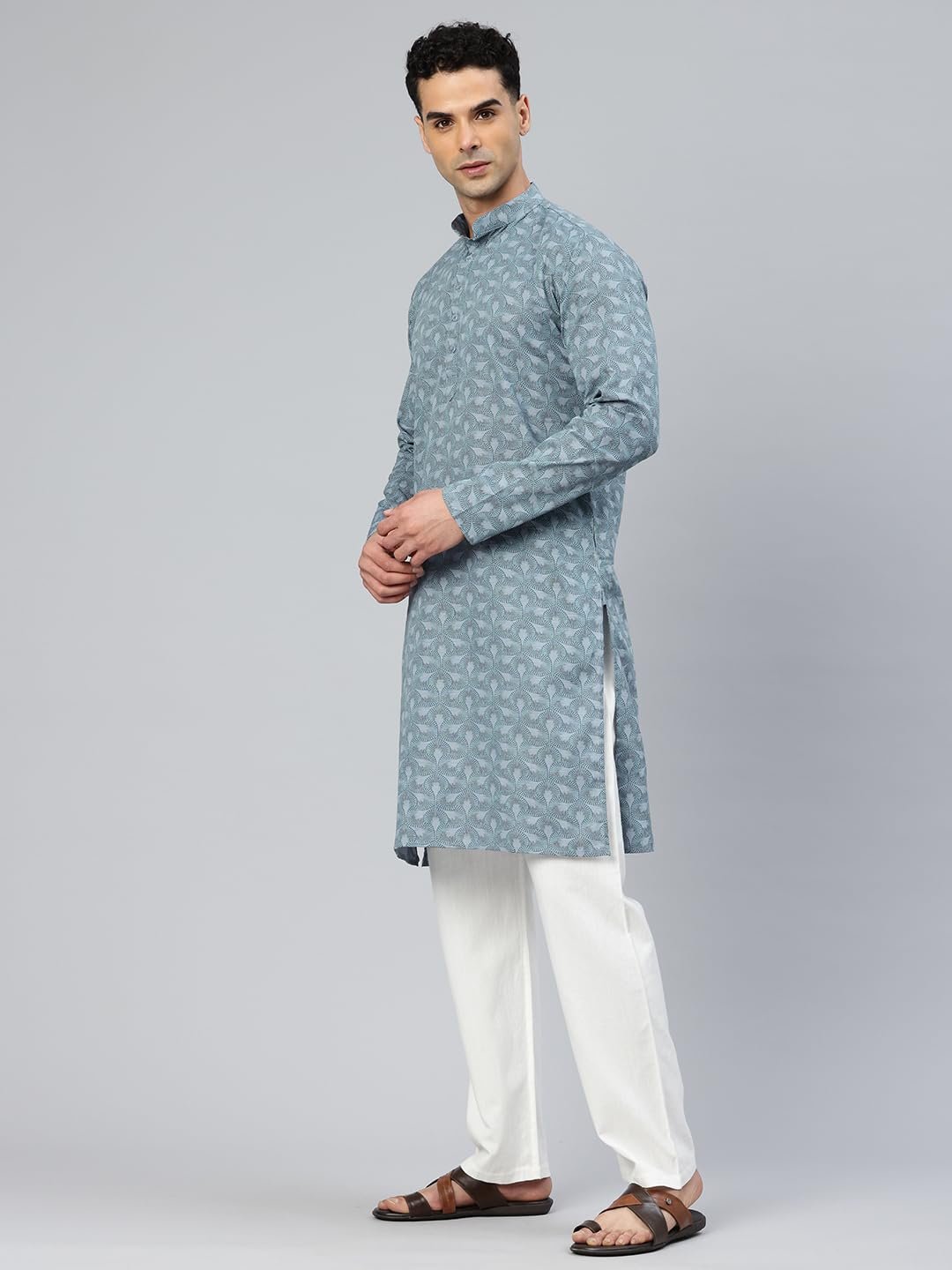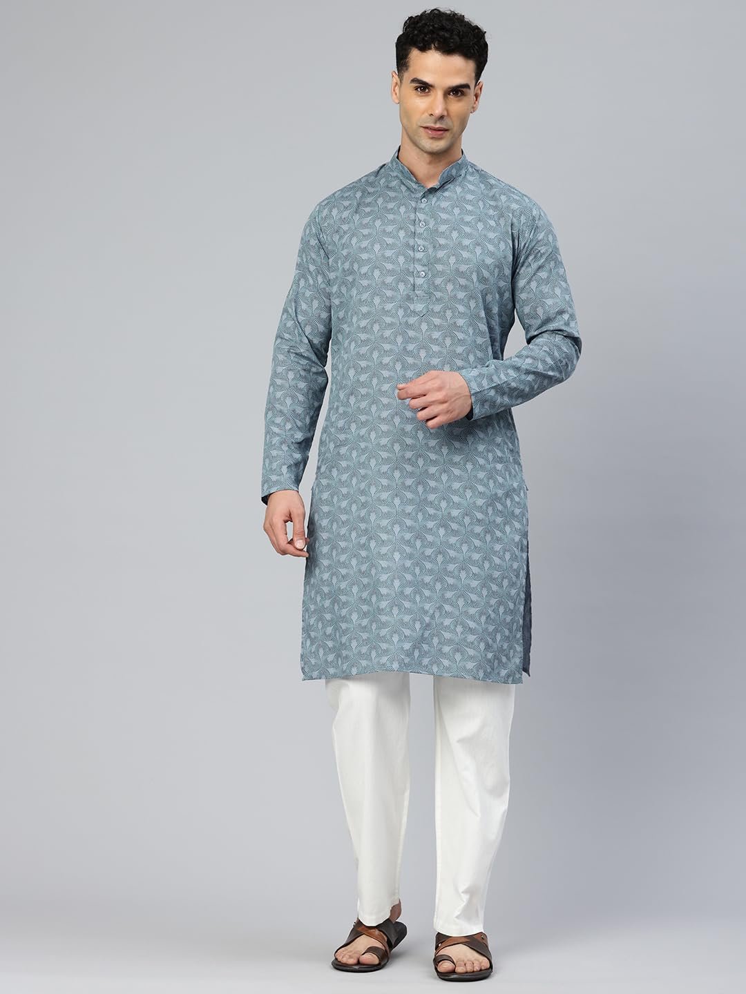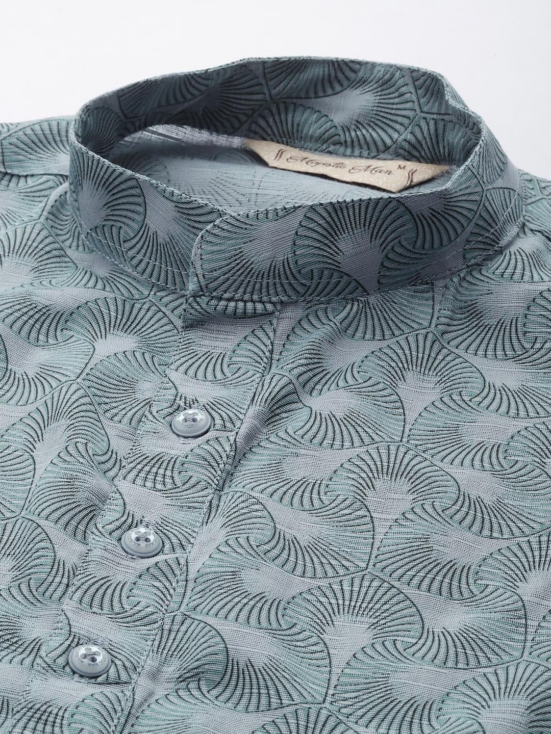 Majestic Man Men’s Cotton Regular Fit Casual Mandarin Collar Ethnic Motifs Printed Long Regular Kurta