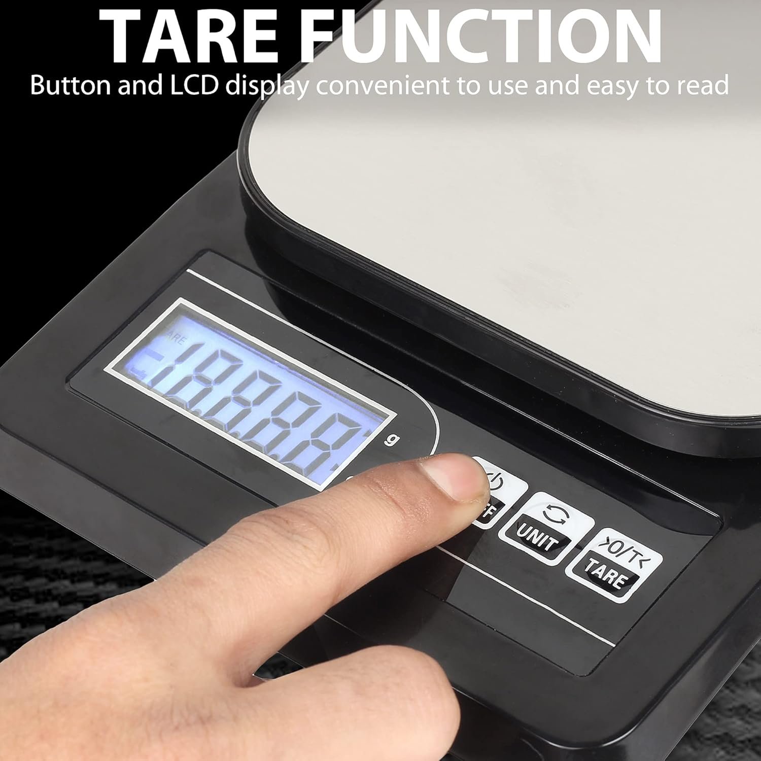 ✅ TARE Function: This function allows you to set the scale to zero with your bowl already placed on the scale to weigh liquid or fragile ingredients.