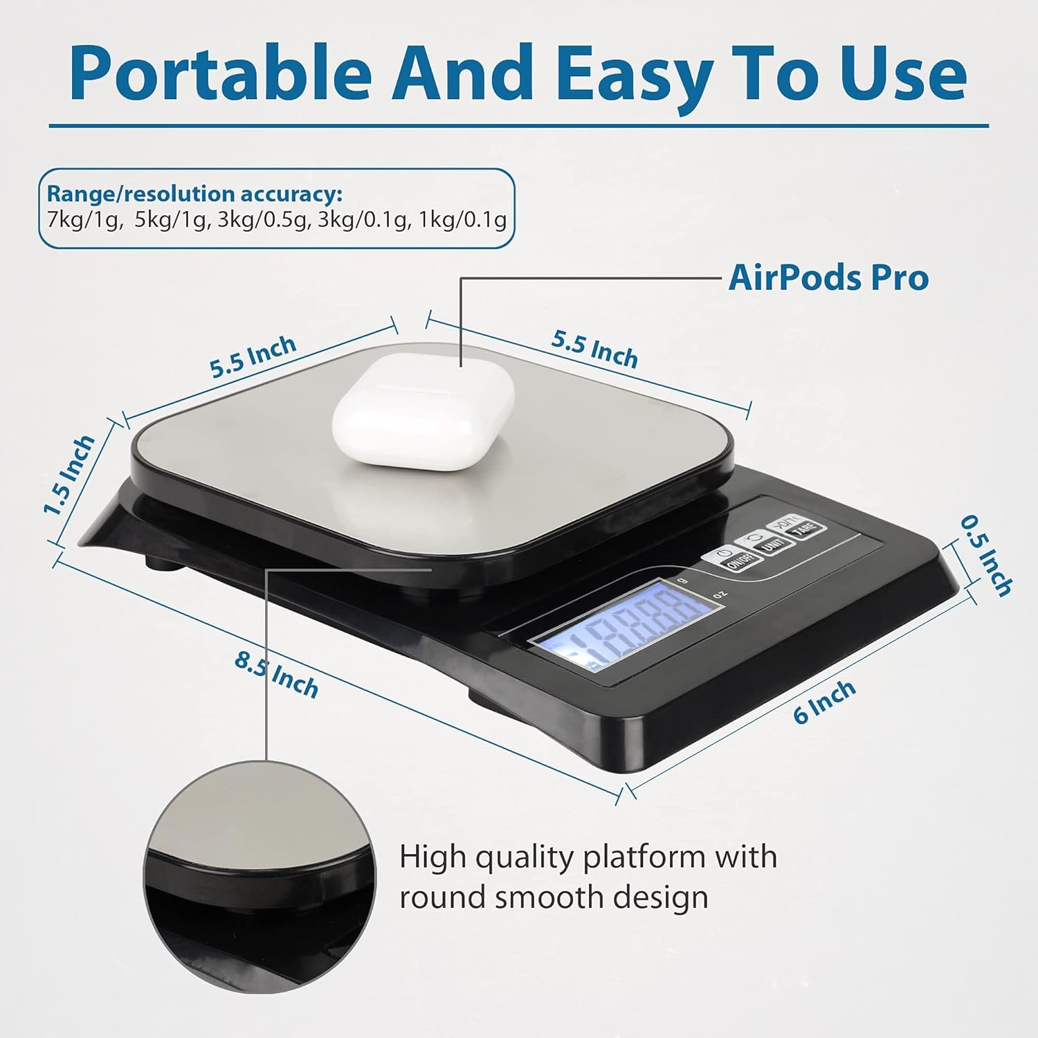 ✅ FEATURE RICH: Backlit LCD display, blue backlight, tare button for zero resetting, auto power off, weighing modes include- grams (g) and ounces (oz)