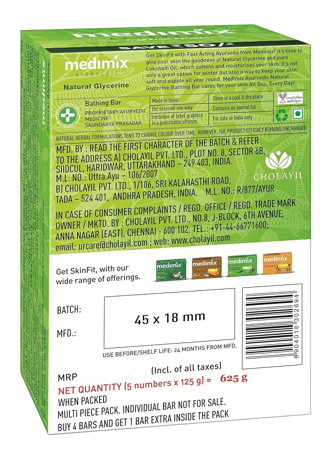 Medimix Ayurvedic Glycerine Soap, 125g (Pack Of 5) and Mysore Sandal Soap,450g (150×3) (Pack Of 3)