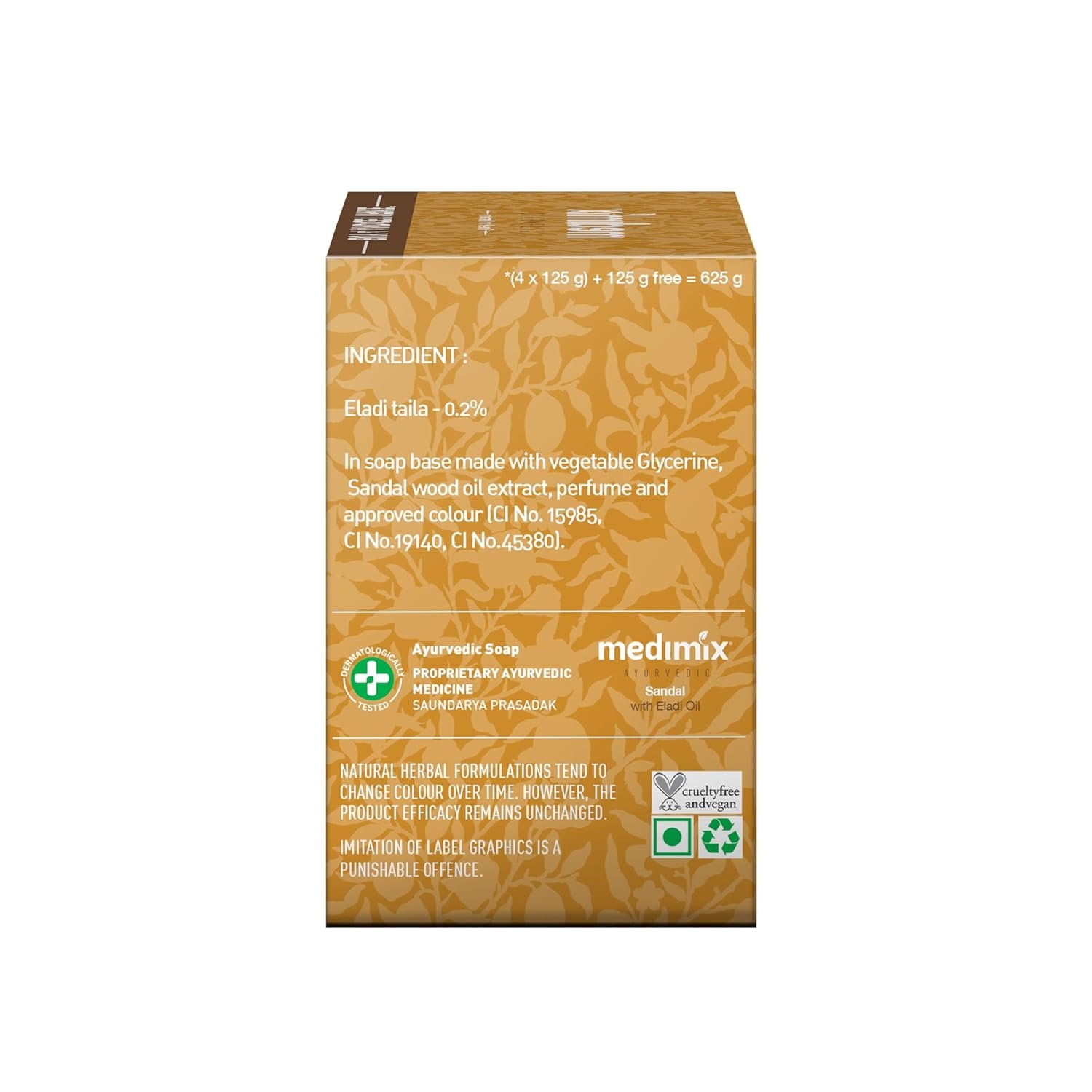 Medimix Ayurvedic Sandal Bathing Bar, 125 g (4 + 1 Offer Pack)