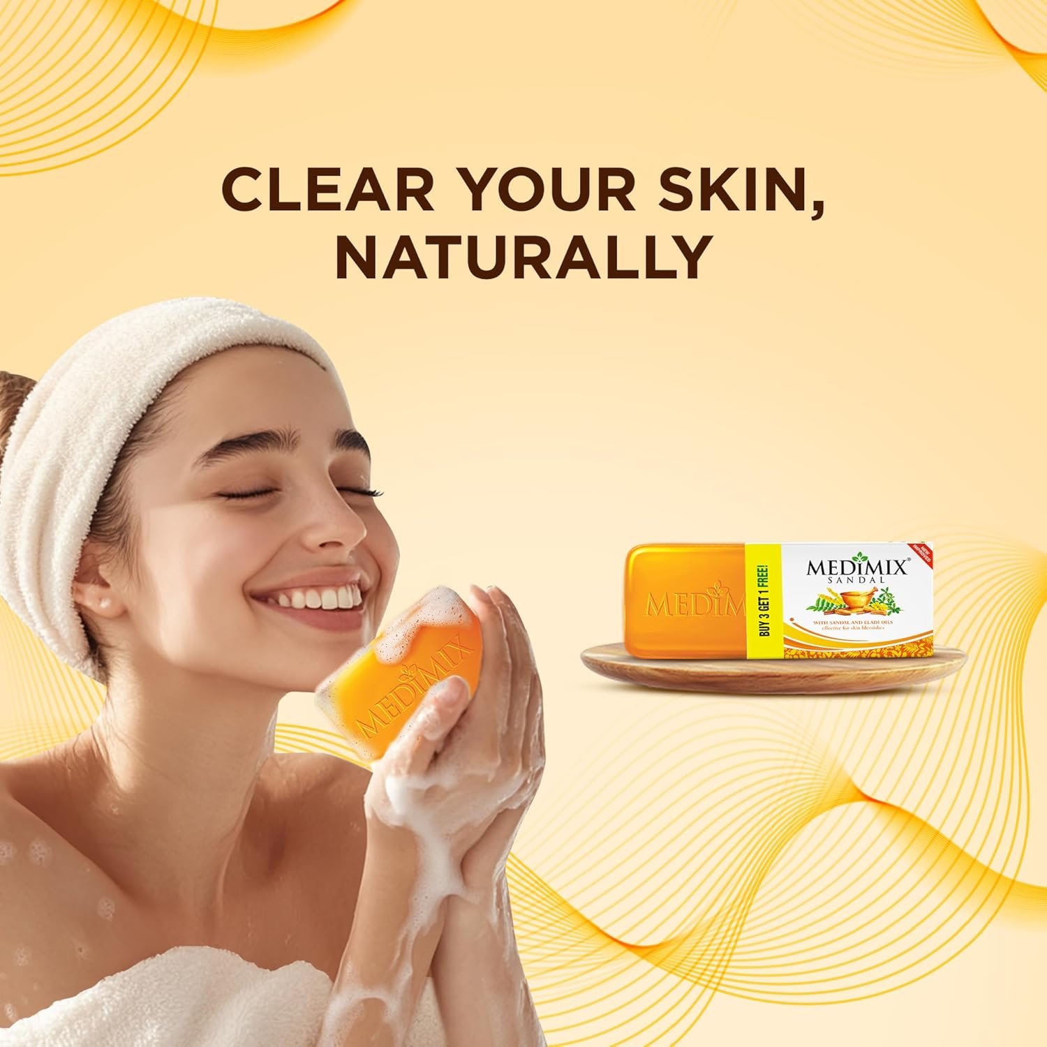 Medimix Sandal Ayurvedic Traditionally Made Bathing Bar Soap 125g (3 + 1 Combo Pack) | Infused with Sandal & Eladi Oil | Effective for Skin Blemish