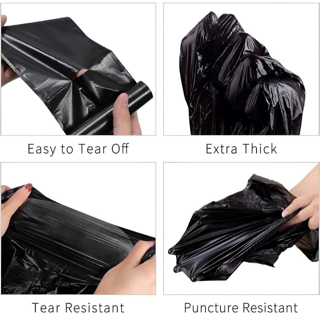Strong & Leak-Resistant Design: Durable black garbage bags made with tear-resistant material that safely holds both dry & wet waste without leaking.