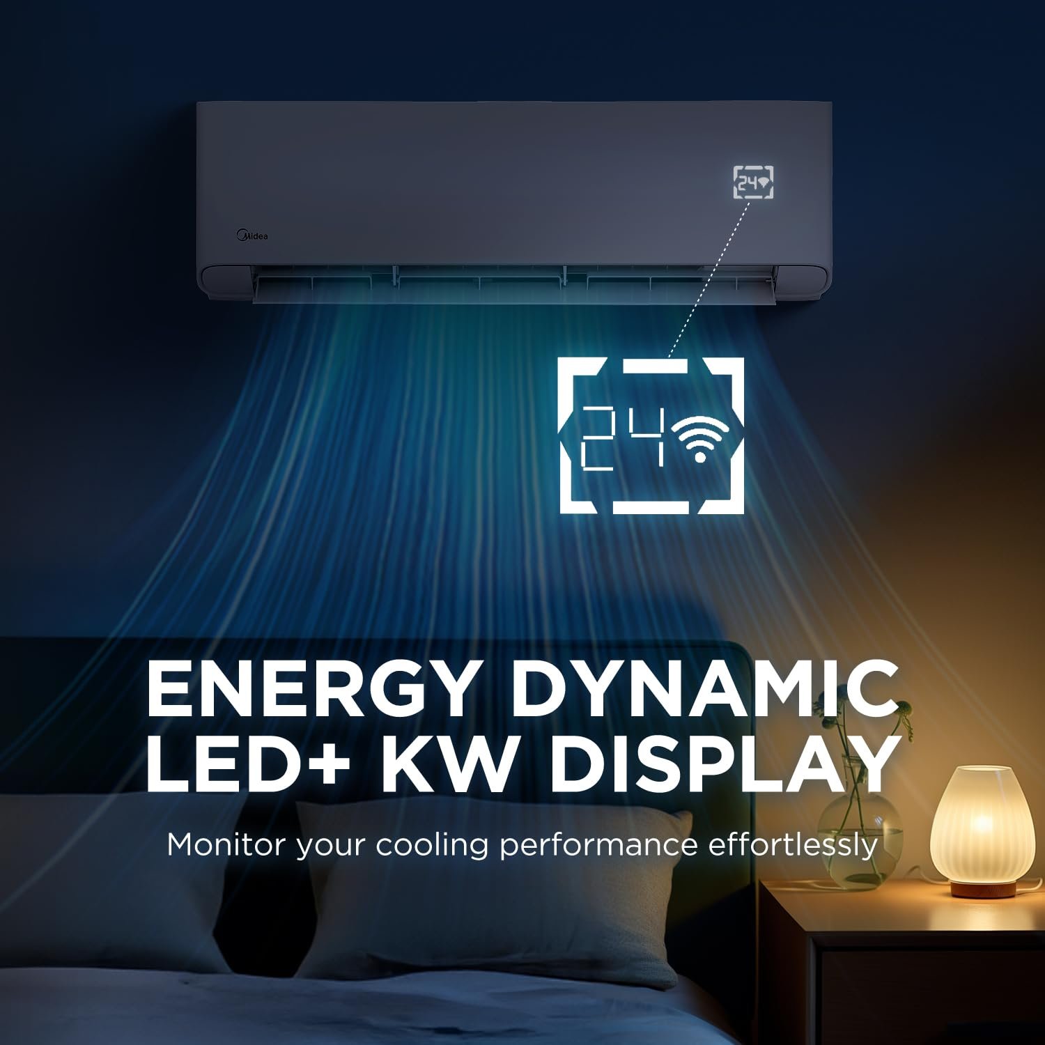 【Smart Wi-Fi Connect】Open your smart phone, ask google & alexa to connect with air conditioners, enjoy fast cooling by Midea ac 1.5 ton. it support with Geo-Fencing Operation in 200m-5km. KW innovative Display also clearly enables you to witness and control power saving