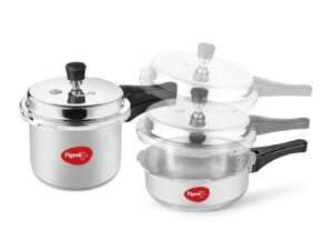Color: Silver; Material: Aluminium; Package Content: 1 – Pc Pressure Cooker With Inner Lid (3 Litres) Aluminium Induction; Dimension in cm (L x W x H): 35.5 x 21.1 x 19.2
