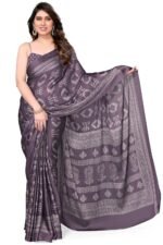 Intricately designed block prints add a touch of traditional charm and artistic flair to the saree, making it a timeless piece of ethnic attire.
