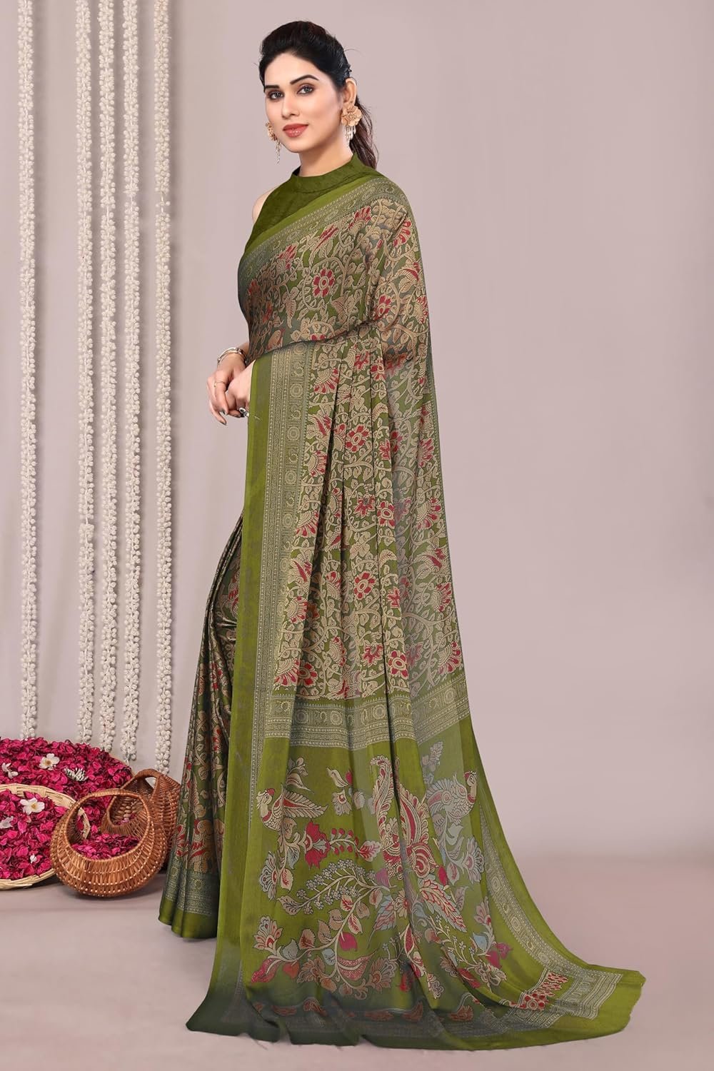 Generic Name : mehndi colour saree | sarees for women latest design 500 | georgette saree