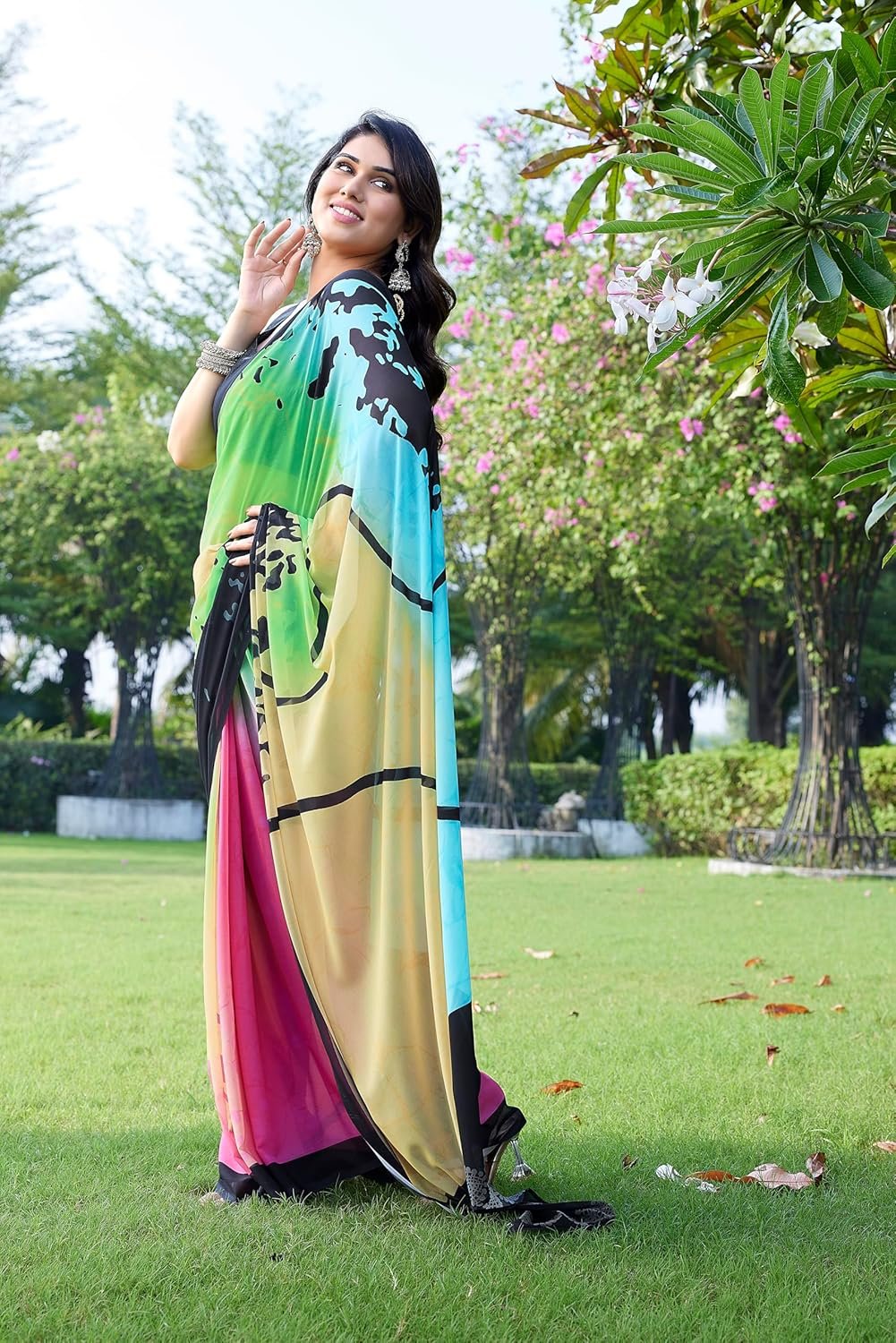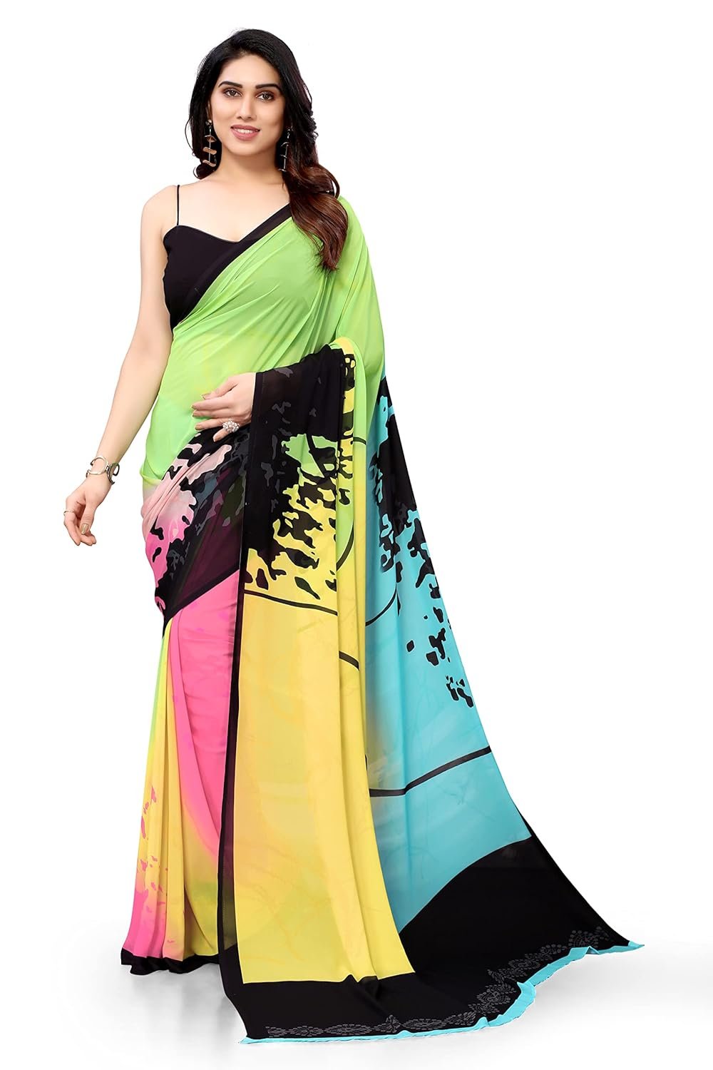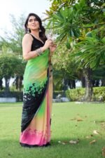 MIRCHI FASHION Women’s Stylish Georgette Digital Printed Saree with Blouse Piece