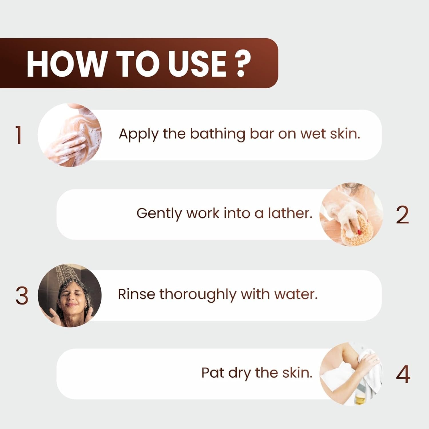Ingredients: Infused with natural sandalwood, saffron, and aloe vera. Free from parabens, sulphates, and harmful chemicals, this herbal soap gently exfoliates, hydrates, nourishes, and maintains healthy skin balance.