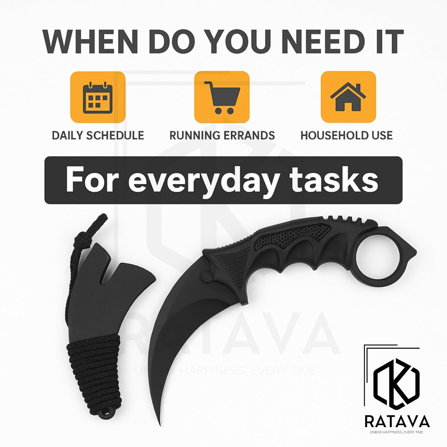 BrandRATAVA ModelMultipurpose Utility Knife (with Cover) Blade MaterialStainless Steel HandleErgonomic Anti-Slip Polymer Overall LengthApprox. 18 cm (knife only) — depends on variant WeightApprox. 35–60 g (lightweight) IncludesKnife + Removable Protective Cover + User Care Instructions