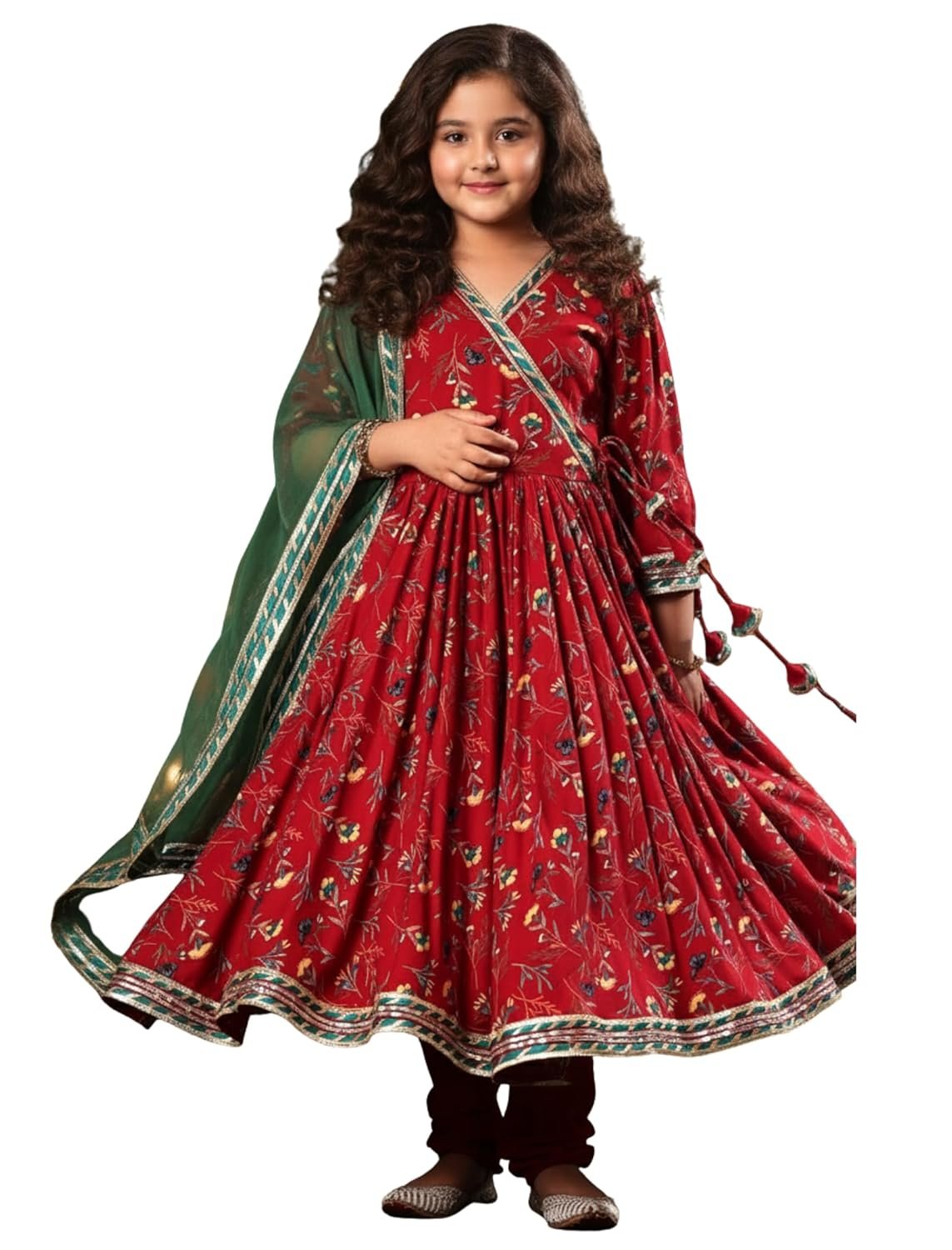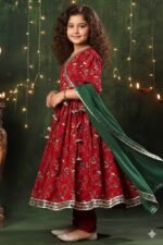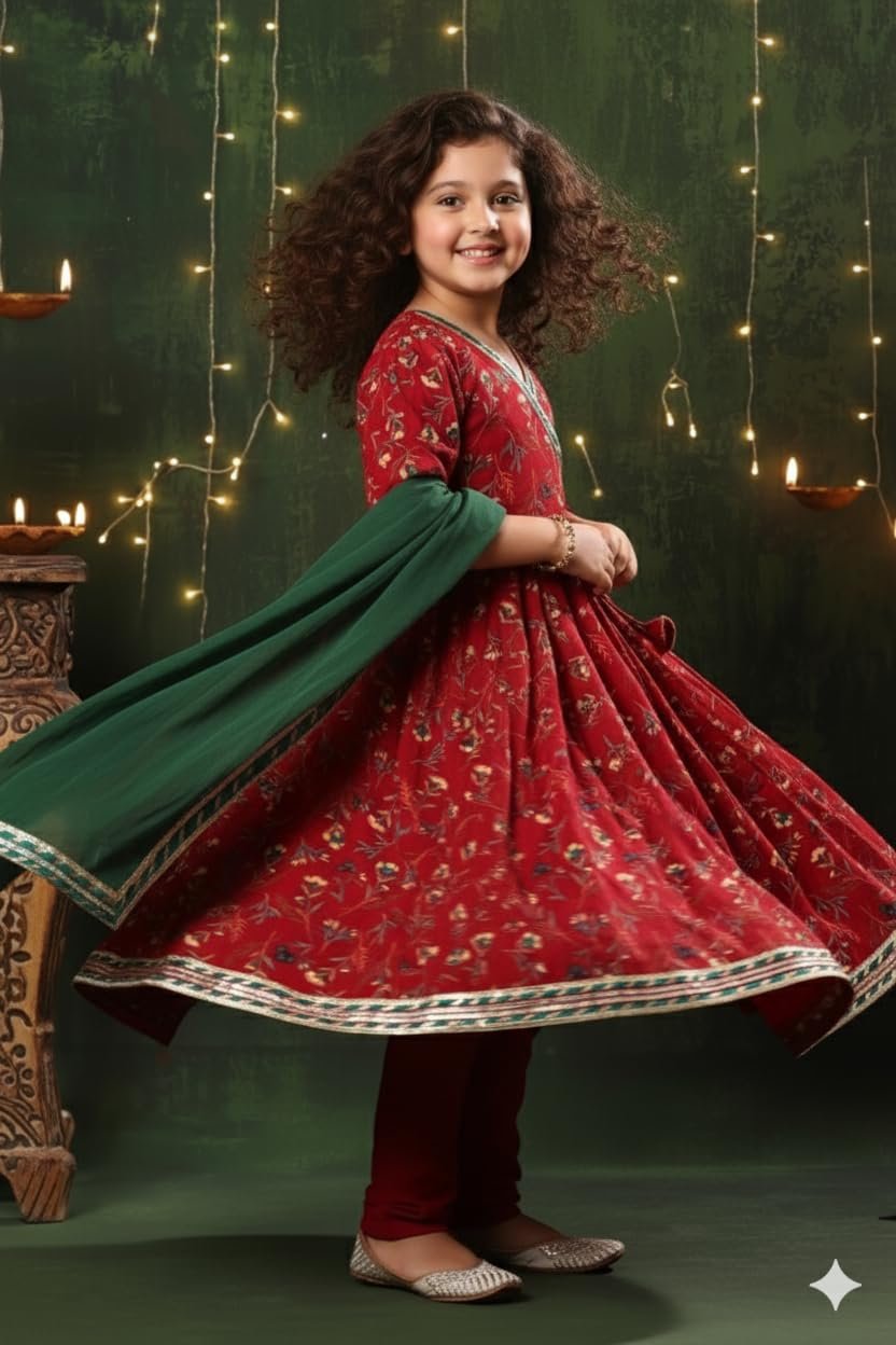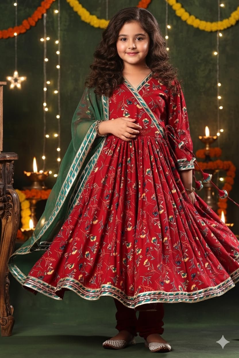 8 reviews for Naixa Girl’s Rayon Blend Floral Pattern Anarkali Dress Payjama Dupatta Set with 3/4 Sleeve V- Neck and Drawstring Closure Type| Kurta Sharara Set for Girl’s