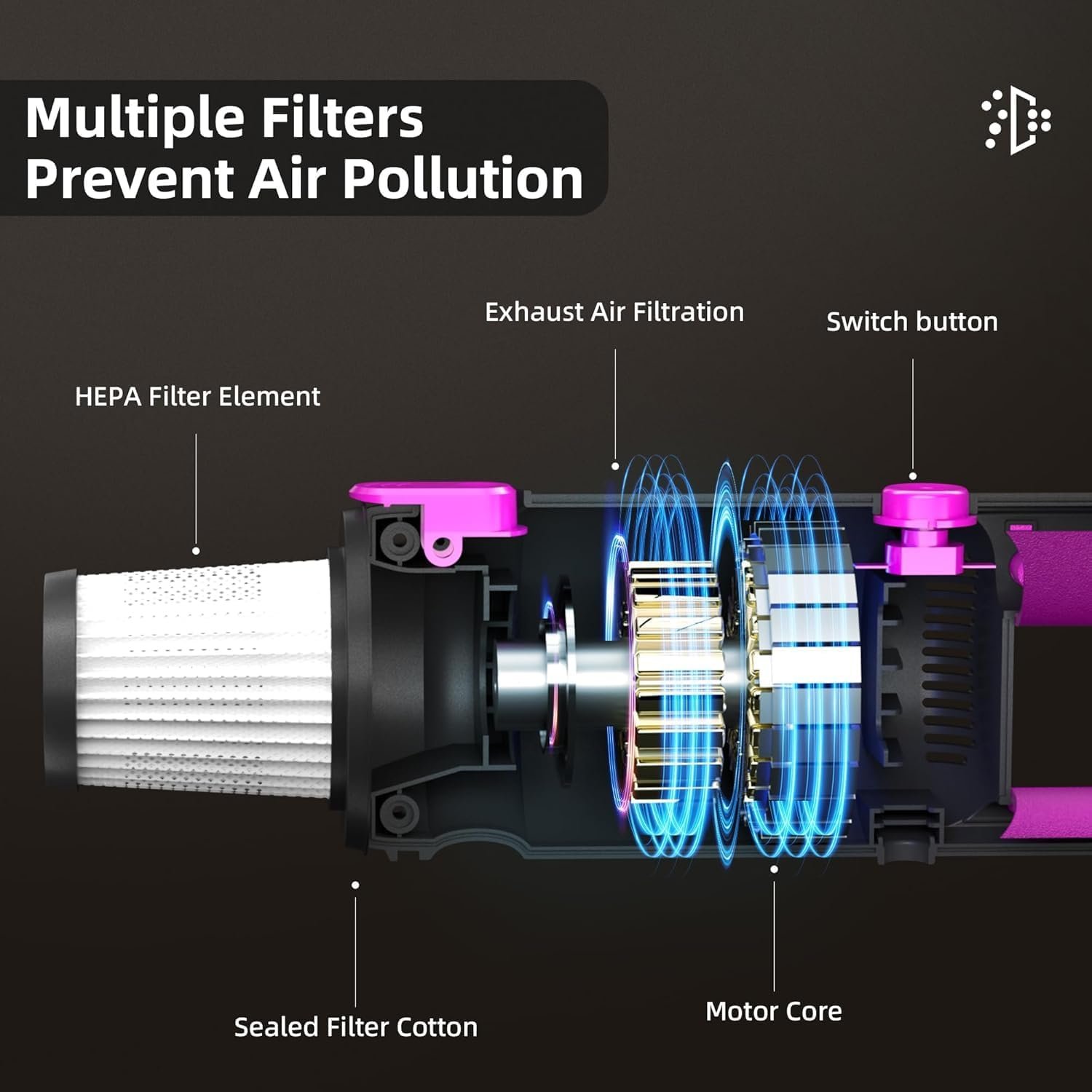 𝐒𝐔𝐏𝐄𝐑𝐈𝐎𝐑 𝐒𝐔𝐂𝐓𝐈𝐎𝐍: With a strong suction capacity of over 20kpa, this hand held vacuum cleaner captures dust and debris with ease. The large 600ml dust cup allows for extended cleaning sessions without interruption.