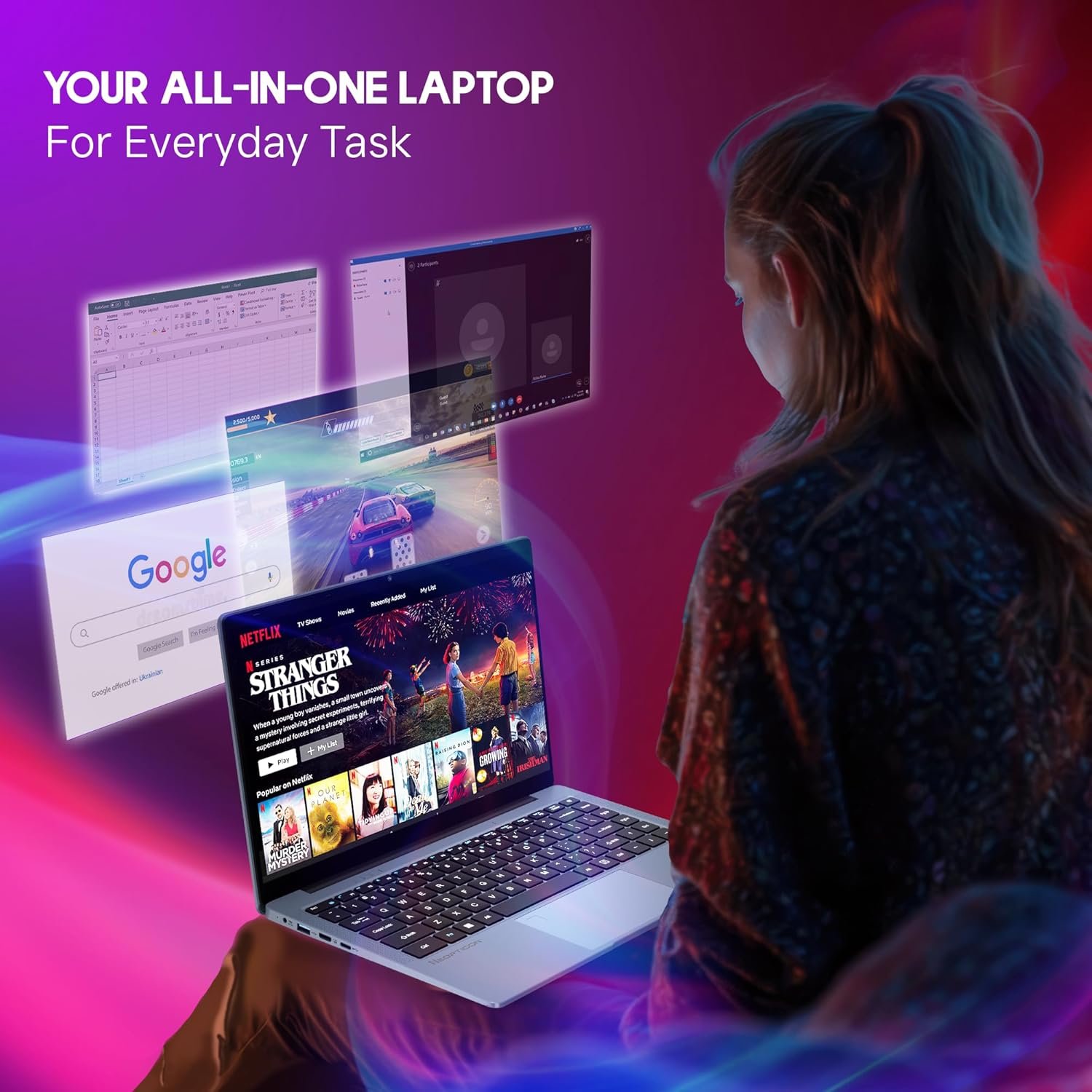 Built for Daily Use: Lightweight at just 1.3kg, it features a webcam, stereo speakers, Bluetooth, and WiFi, making it perfect for everyday tasks, video calls, and entertainment on the go.