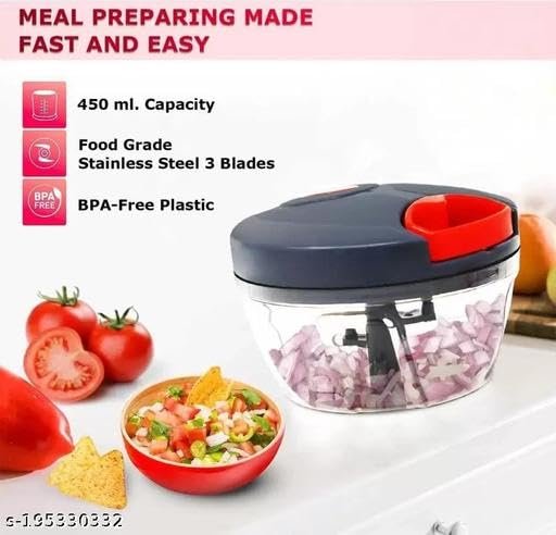 New Mini Handy Plastic Chopper 450 ml with 3 Blades(Pack of 1)|Design – for Home and Kitchen