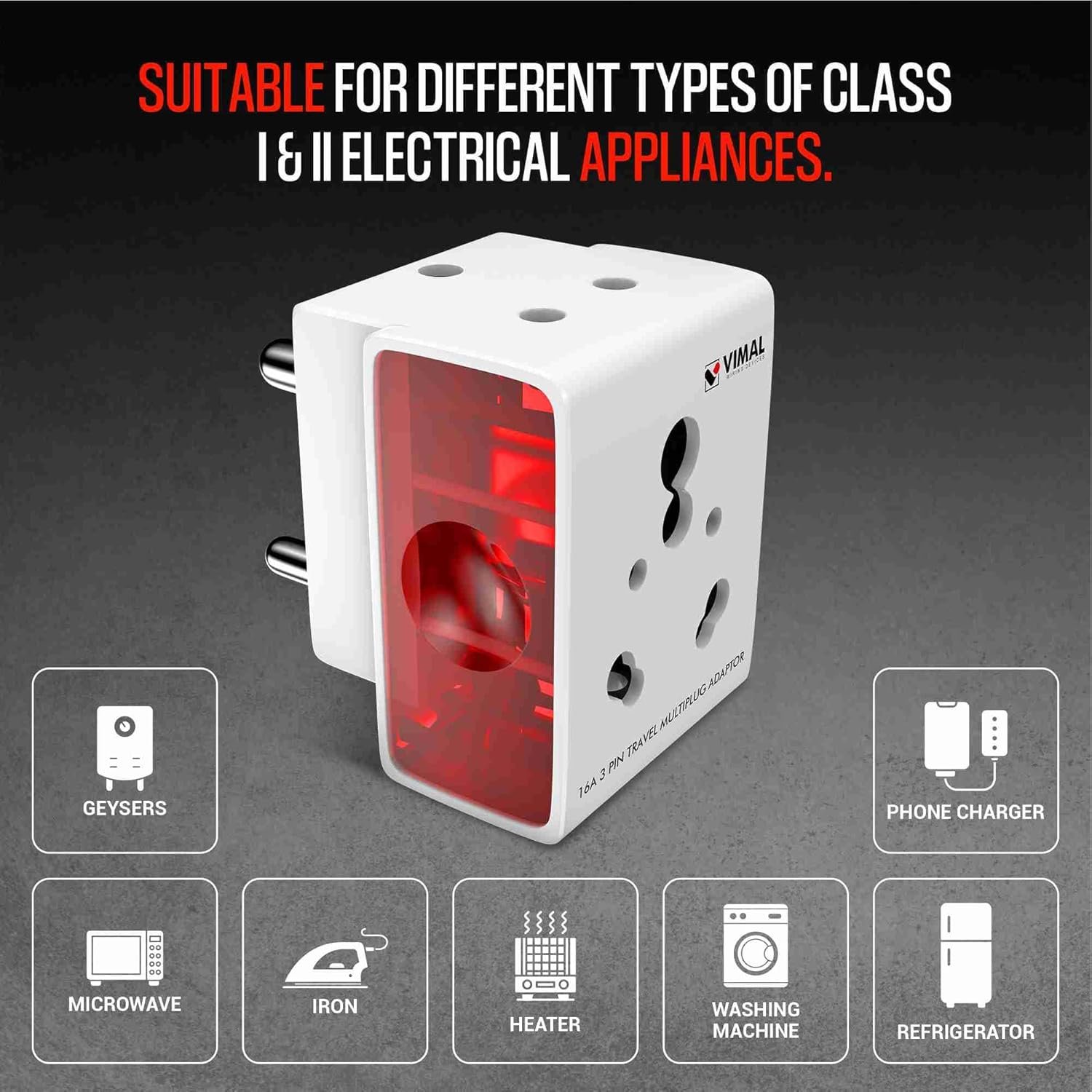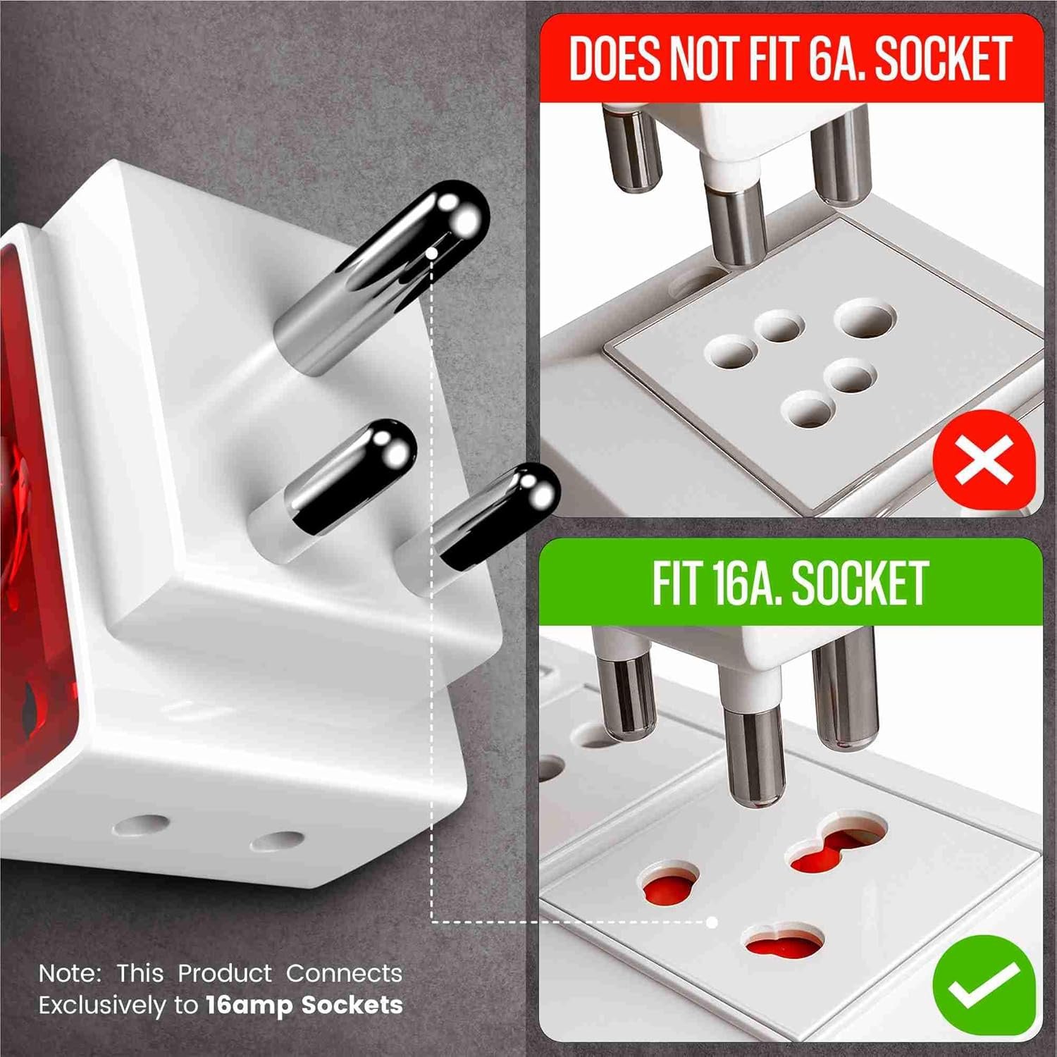 Power details -16A ,Rated Voltage – 240 Volts.It can be used as a Travel Adaptor as well as Home utility purpose.