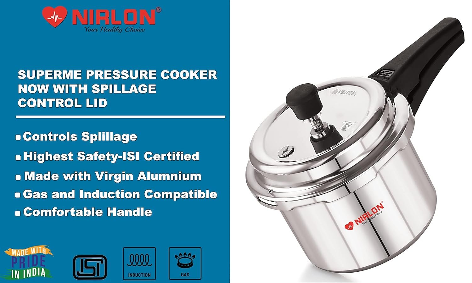 NIRLON Induction Base Outer Lid Aluminium Pressure Cooker, 3 Liters, Silver