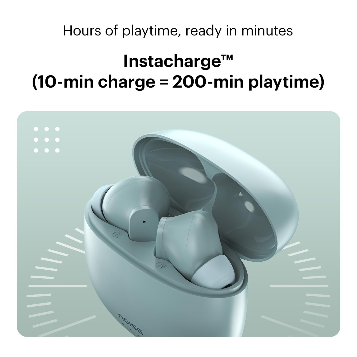 Noise Buds VS104 Truly Wireless Earbuds with 45H of Playtime, Quad Mic with ENC, Instacharge(10 Min=200 Min), 13Mm Driver, Low Latency, BT V5.2 (Mint Green)