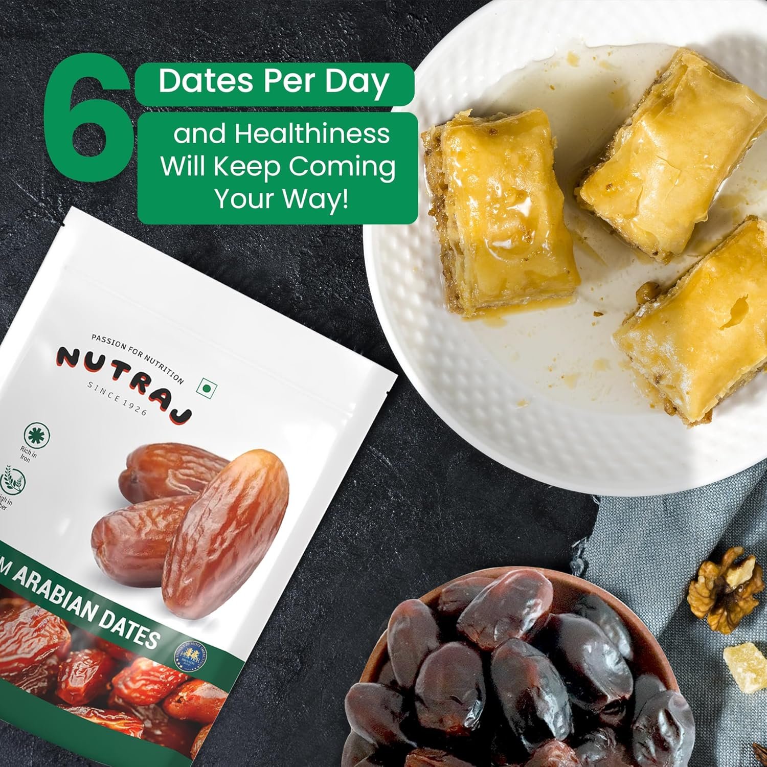 Why Nutraj – The finest quality of dates / khajoor, are handpicked and then processed and packed with the help of High-tech cutting-edge machinery, used in our processing facilities, which helps keeping all the nutrients and taste intact