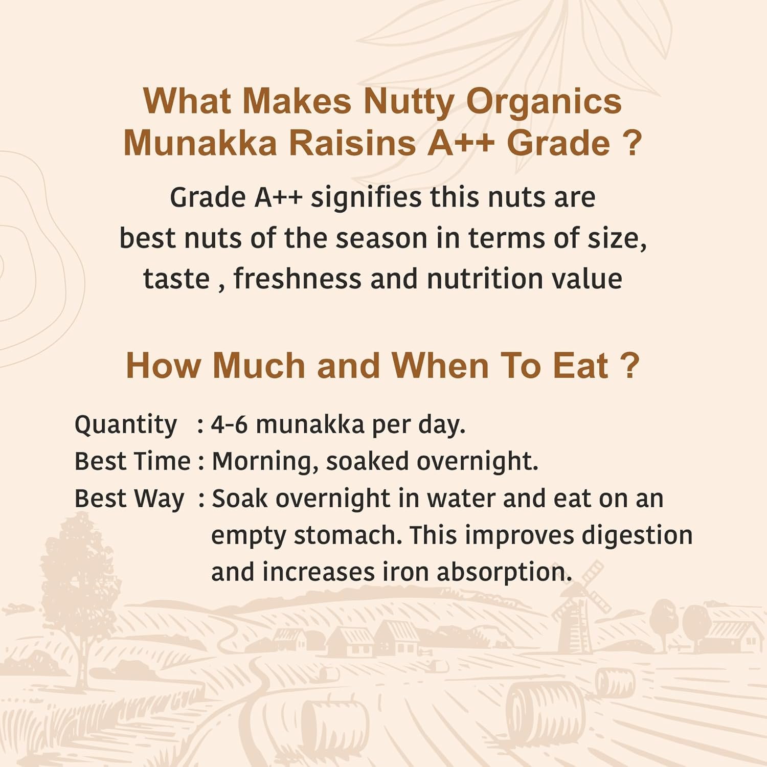 Nutrient-Dense: In addition to iron and protein, these raisins also offer fiber, antioxidants, and other essential minerals, supporting overall well-being.