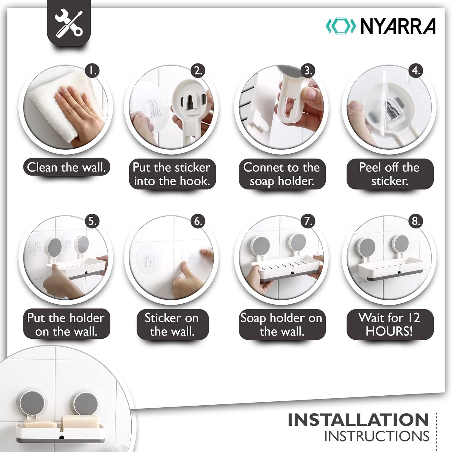 𝐒𝐭𝐫𝐨𝐧𝐠 𝐚𝐧𝐝 𝐃𝐮𝐫𝐚𝐛𝐥𝐞: This Wall Mounted Soap Holder is Made of High Quality ABS Material which is stronger and Durable and Enhances Service Life of Bathroom Accessories.