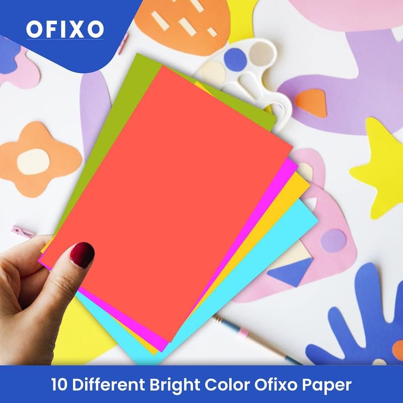 OFIXO 100 Pieces Colour Sheets Copy Printing Papers/Art and Craft Paper A4 Sheets Double Sided Coloured Origami Folding DIY Craft Smooth Finish Home, School, Office Stationery (10 Sheets each color)