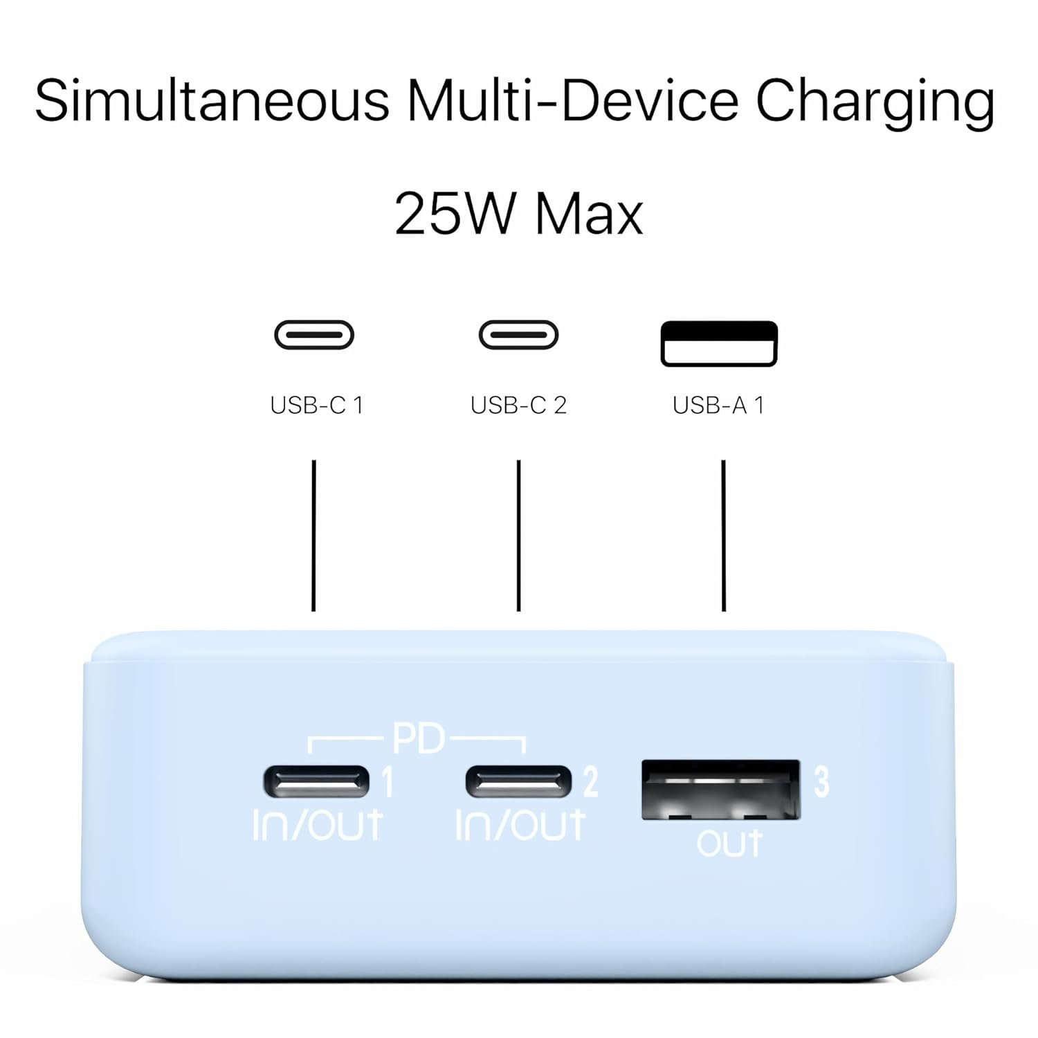 PD Fast Charging – 25W & 22.5W Output – Delivers ultra-fast charging via dual USB-C (25W) and USB-A (22.5W) for quick power-ups.