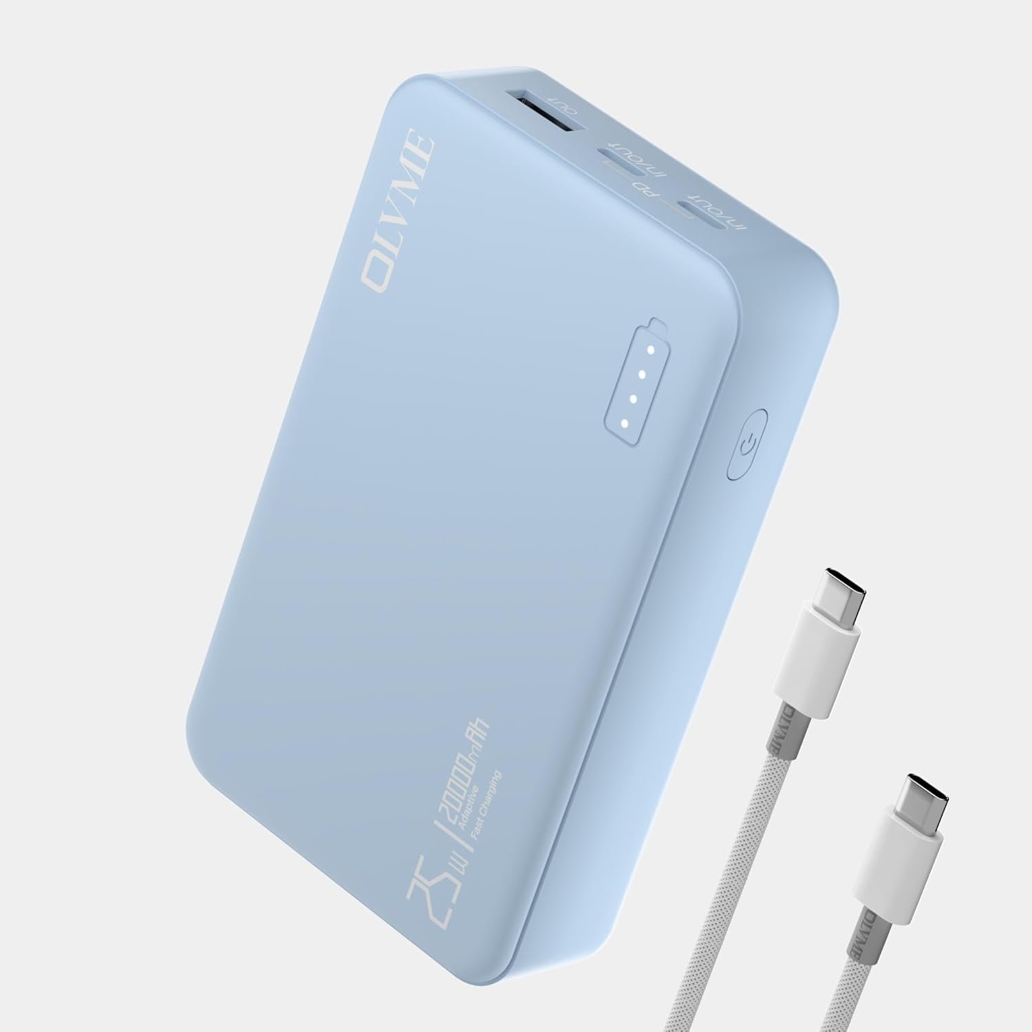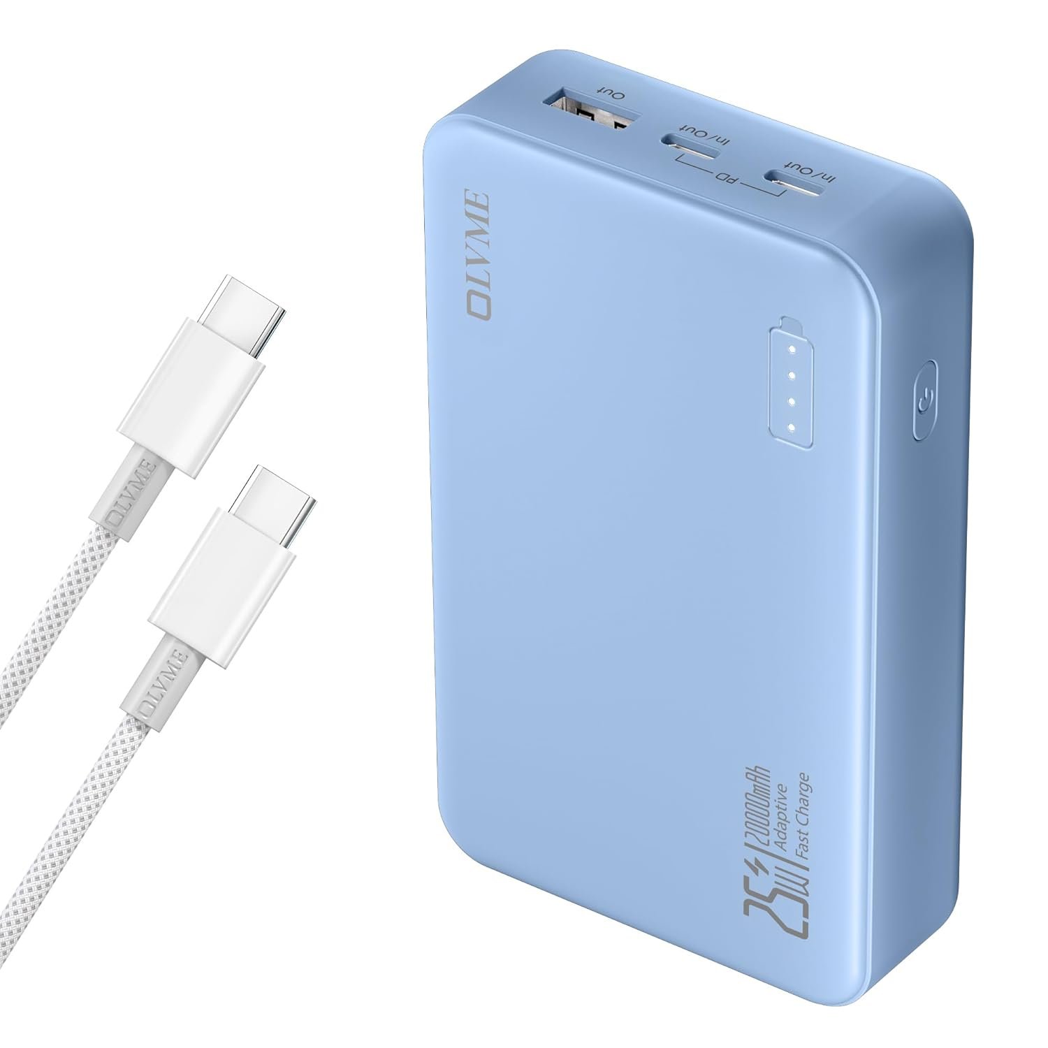 OLVME Newly Launched 20000mAh Small Size Mini PD Power Bank |for iPhone,Samsung 50% in 30min| C to C Cable | 2 Type- C Port + 1 USB A | Universal Compatible All Mobiles | Soft Matte Touch Blue.
