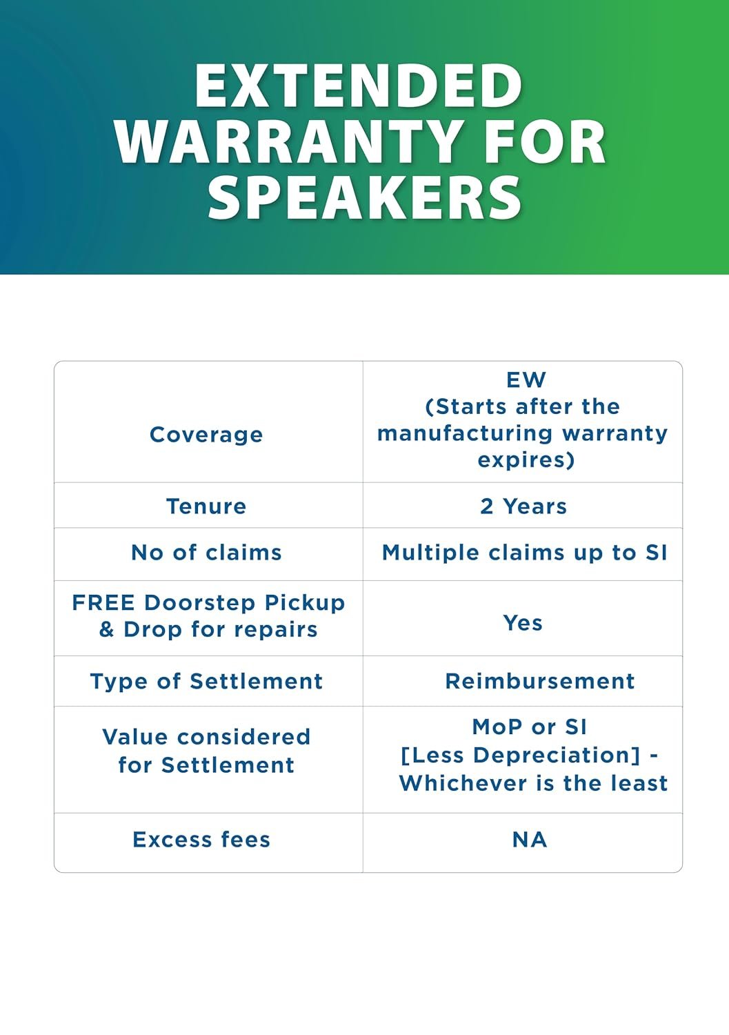 Validity : Extended Warranty will start after the Brand warranty ends & continues for 1 year/ 2 years as per plan. What’s covered : The plan covers all defects & electric malfunctions as covered under the original Brand warranty.