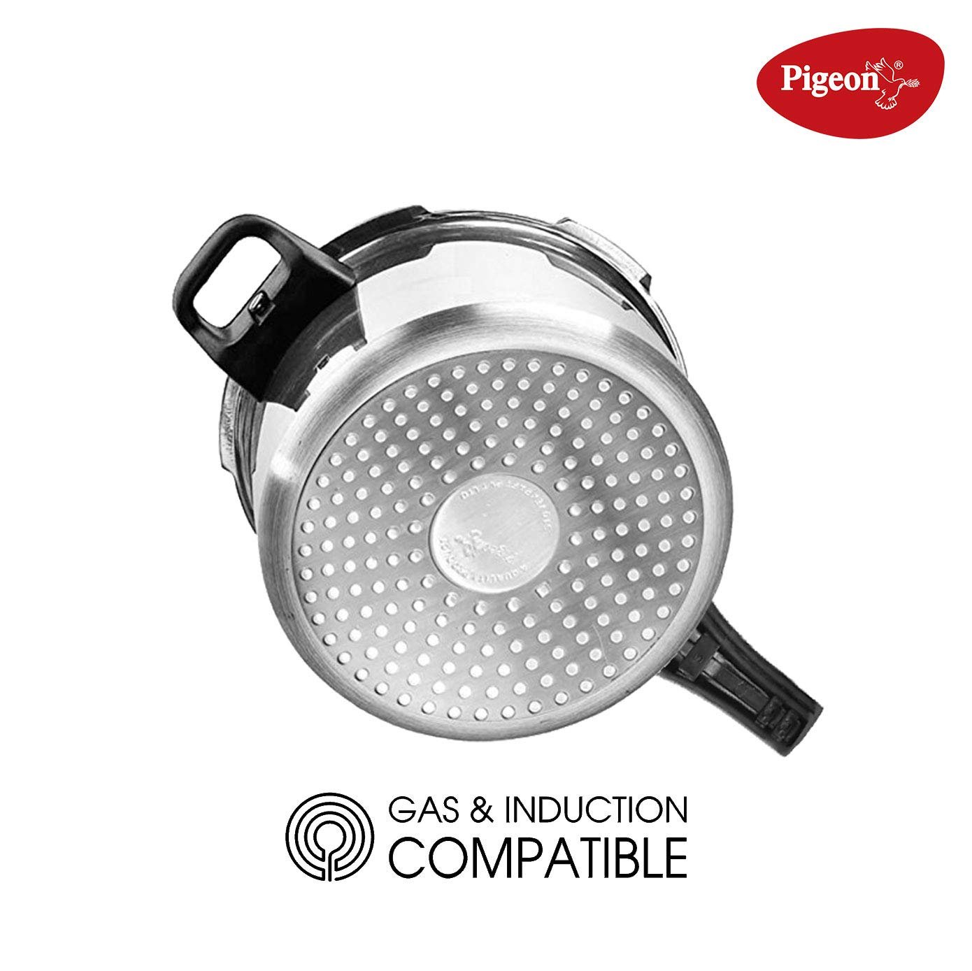Featuring a capacity of 3 litres and a smart outer lid design, the Pigeon Favourite aluminium pressure cooker is an ideal cookware for small to medium families and can help cook your favourite dishes in a jiffy while retaining its taste. Its special induction base makes it compatible with both gas stove and induction cooktops, adding to its versatility. Use this pressure cooker to cook lip-smacking sabzis, dal, rice, meat and much more.