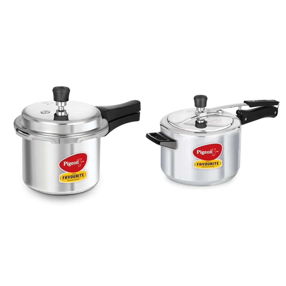 Pigeon by Stovekraft Favourite Outer Lid Non Induction Aluminium Pressure Cooker, 3 litres, Silver + Pigeon by Stovekraft Favourite Aluminium Pressure Cooker with Inner Lid, 5 litres, Silver