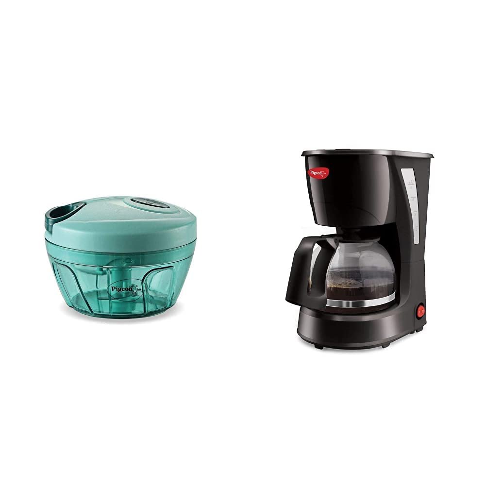 Pigeon by Stovekraft New Handy Mini Plastic Chopper with 3 Blades, Green & Coffee Maker Brewster, Black Combo
