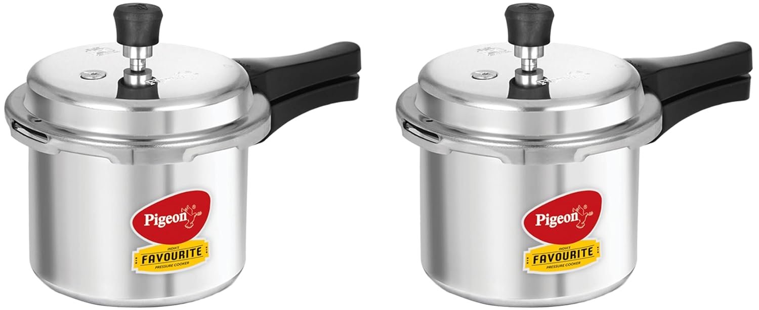 Pigeon By Stovekraft Special Aluminium Pressure Cooker with Outer Lid Induction and Gas Stove Compatible 3 Litre Capacity for Healthy Cooking (Silver) (Pack of 2)