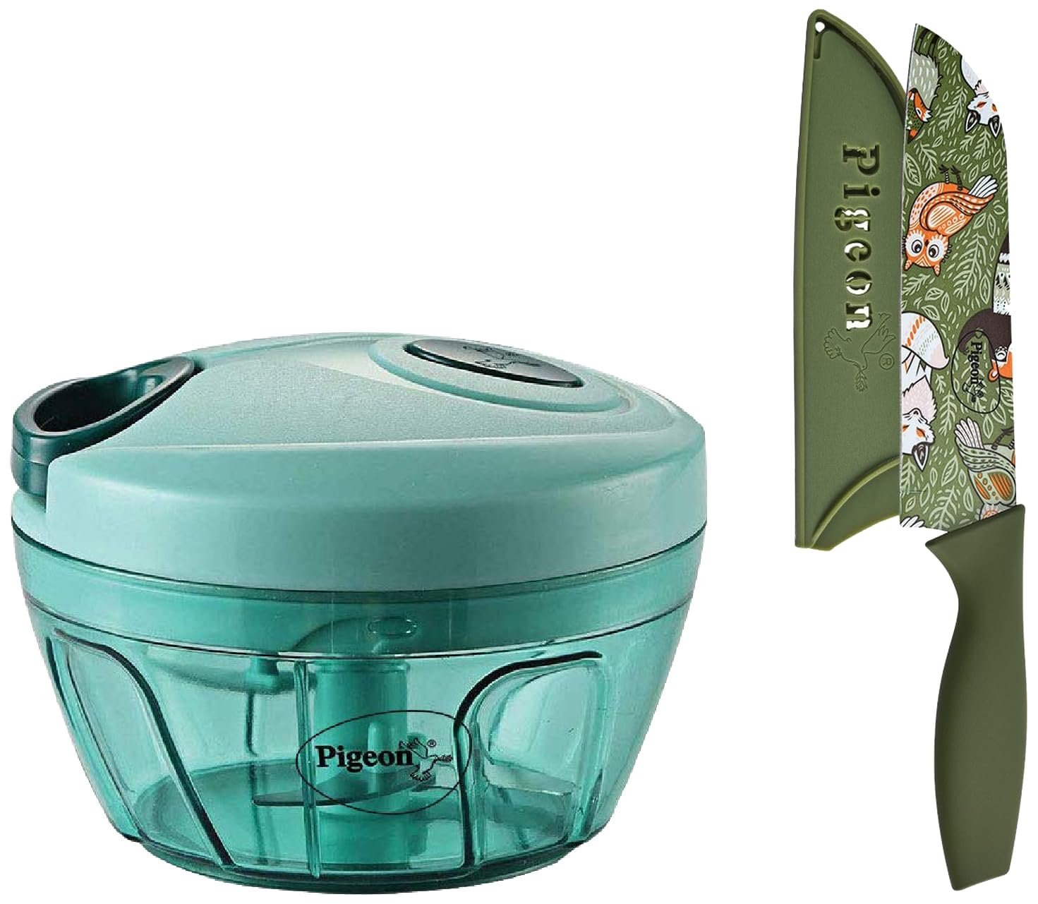 Pigeon Chopping Combo 400 ml Chopper + Flora 6 Inch Knife(Green) with Knife Cover