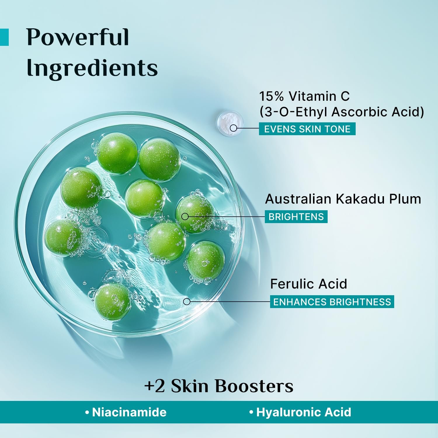 ✅Boosts Brightness: Made with potent concentration of Vitamin C in the form of 3-O-Ethyl Ascorbic Acid, a stable and effective derivative of Vit C.
