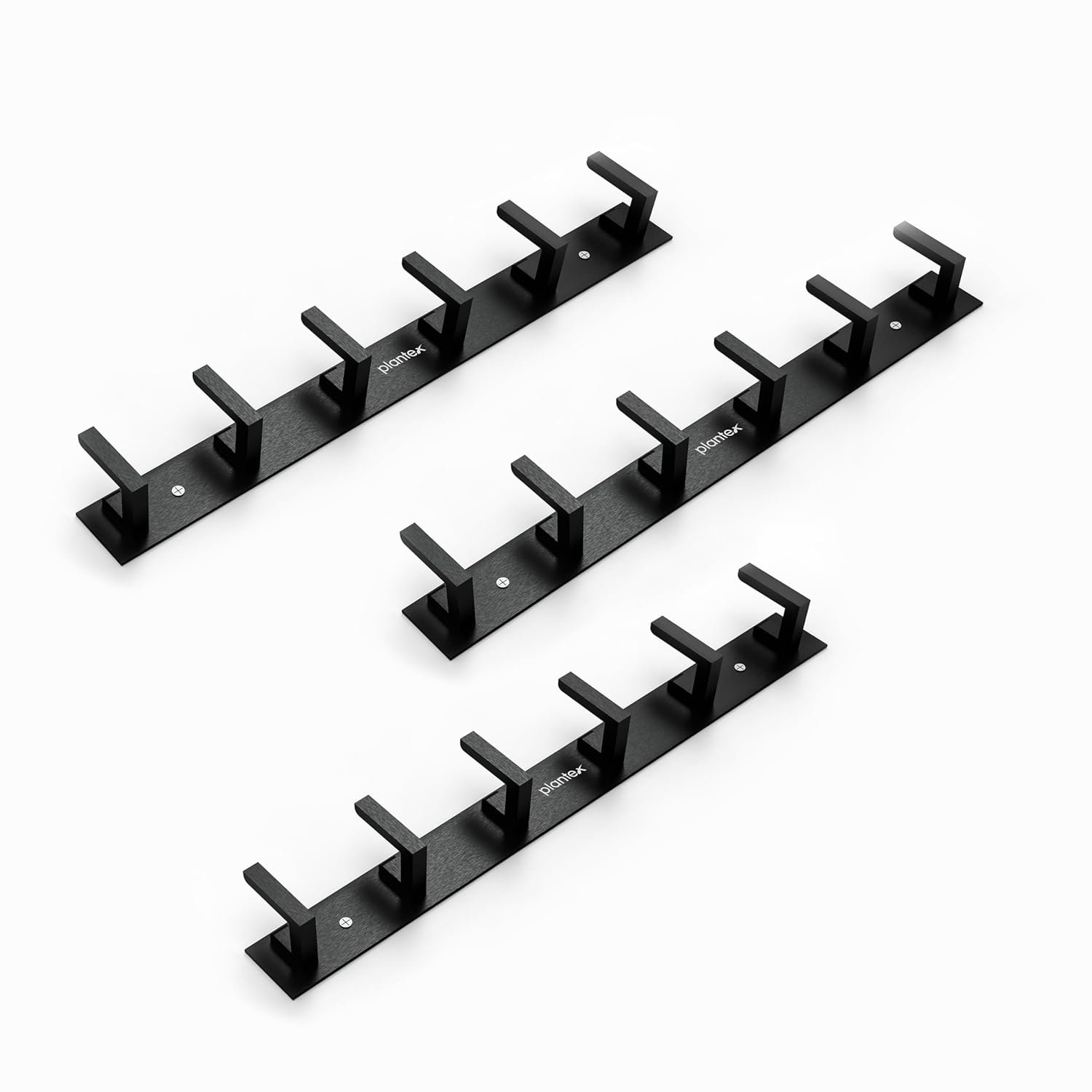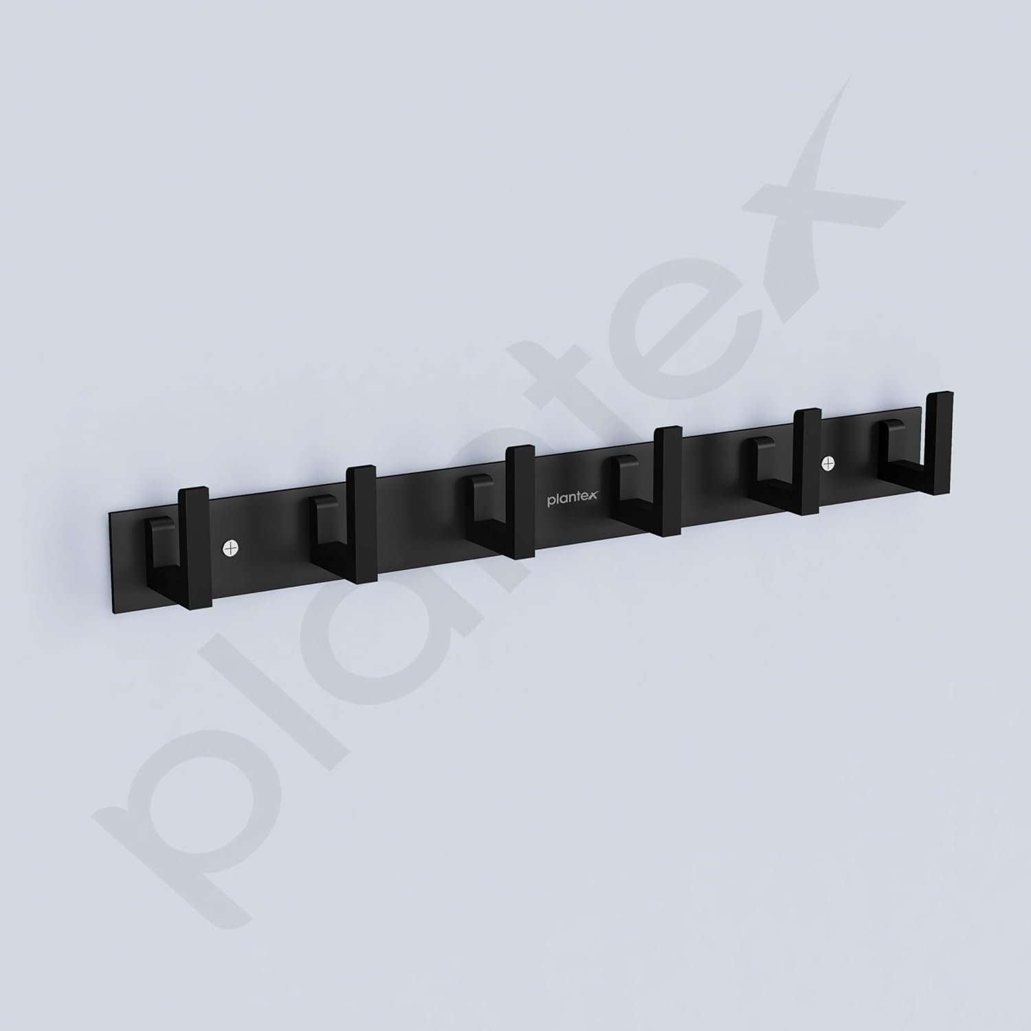 Plantex Aluminum Hook Rail with L-Shape Hooks for Walls of Bathroom/Kitchen–Hook Rail Bar for Clothes/Towel/Keys-Pack of 3 (6 Hooks, Black)