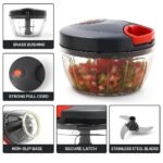 Easy to Use & Clean: Just place the foods in the container, twist and lock the cover, and pull the string to turn the cleaver. After each use, the blades, bowl, and storage lid can be easily taken apart and safely cleaned.