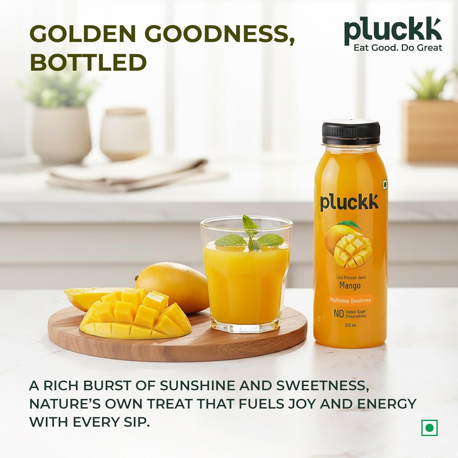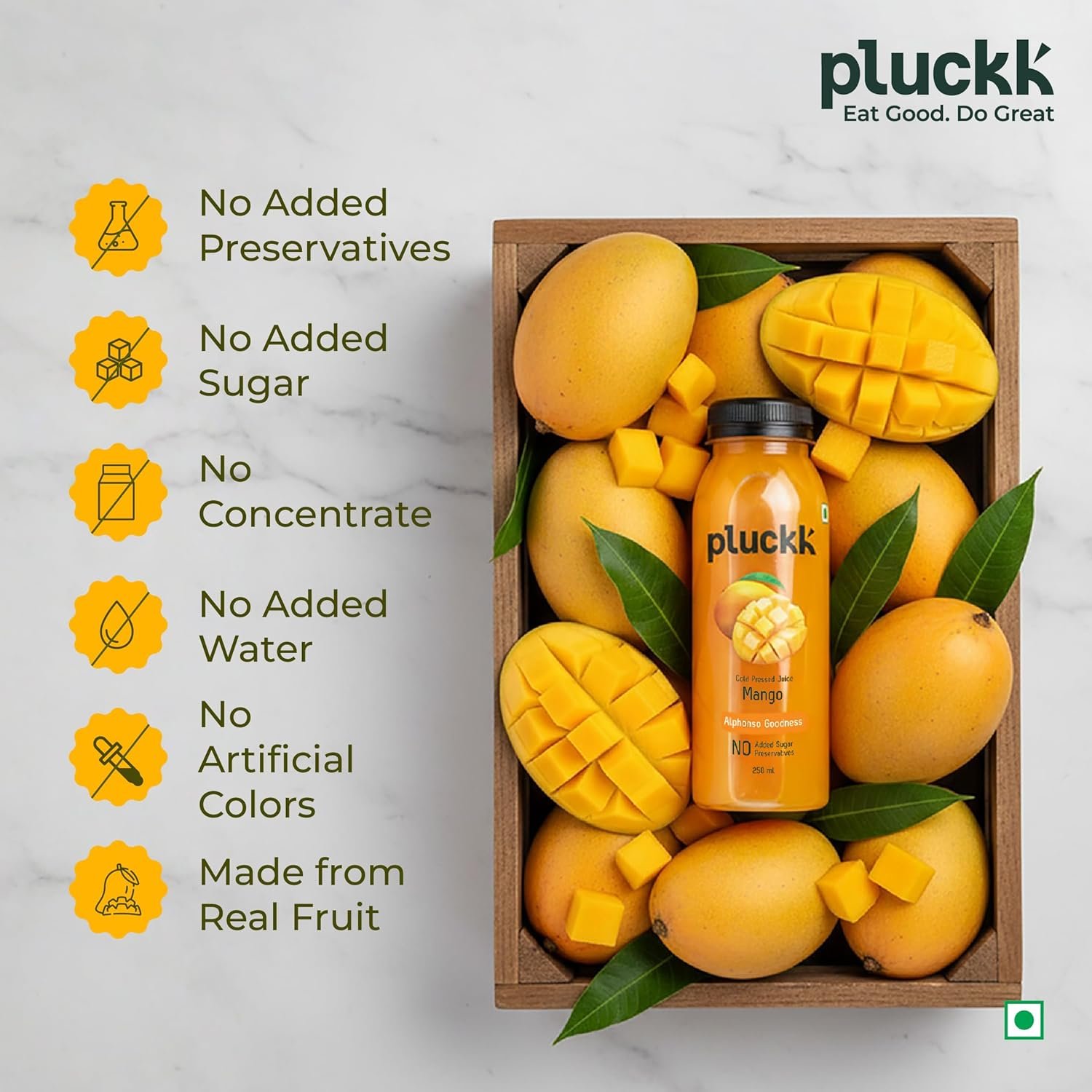Pluckk Fresh Cold Pressed Mango Juice, No Preservatives, No Added Sugar, 100% Fruit Juice, 250 ml