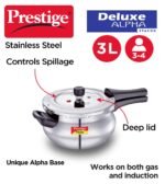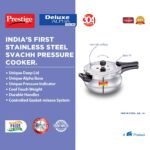 Prestige 3 Litre Stainless Steel Deluxe Alpha Svachh Outerlid Mini Handi Pressure Cooker||10 years warranty|Deep lid for spillage control|Gas & Induction compatible|Gasket release system|ISI Certified