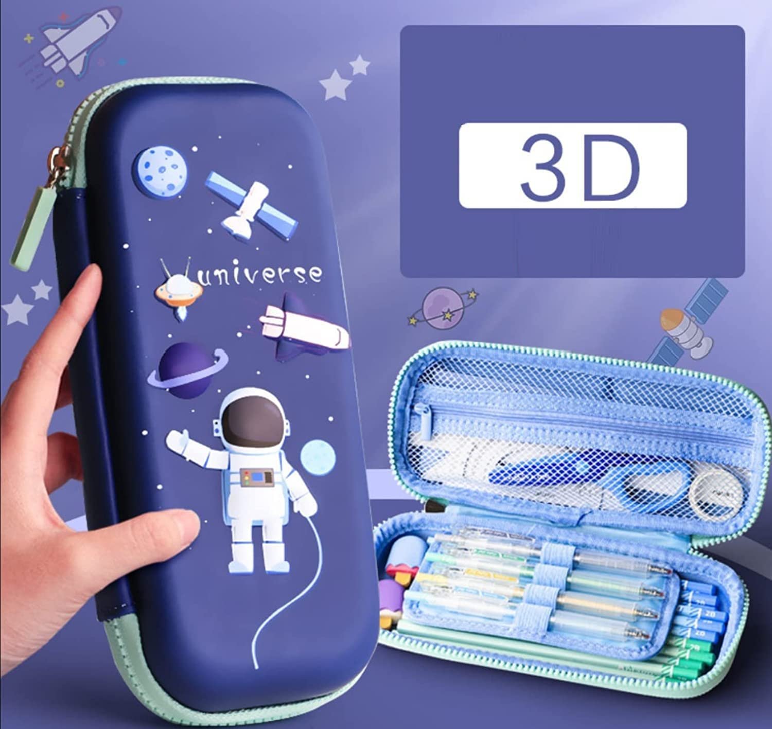 EVA MATERIAL & EMBROSSED HARDTOP: This carrying pencil case is made of durable and stylish EVA material, compressive, shockproof, waterproof, all-round protection of stationery. this cute pencil case comes with a embossed SPACE ASTRONAUT pattern on the front that gives a vivid look and make your kid happy.