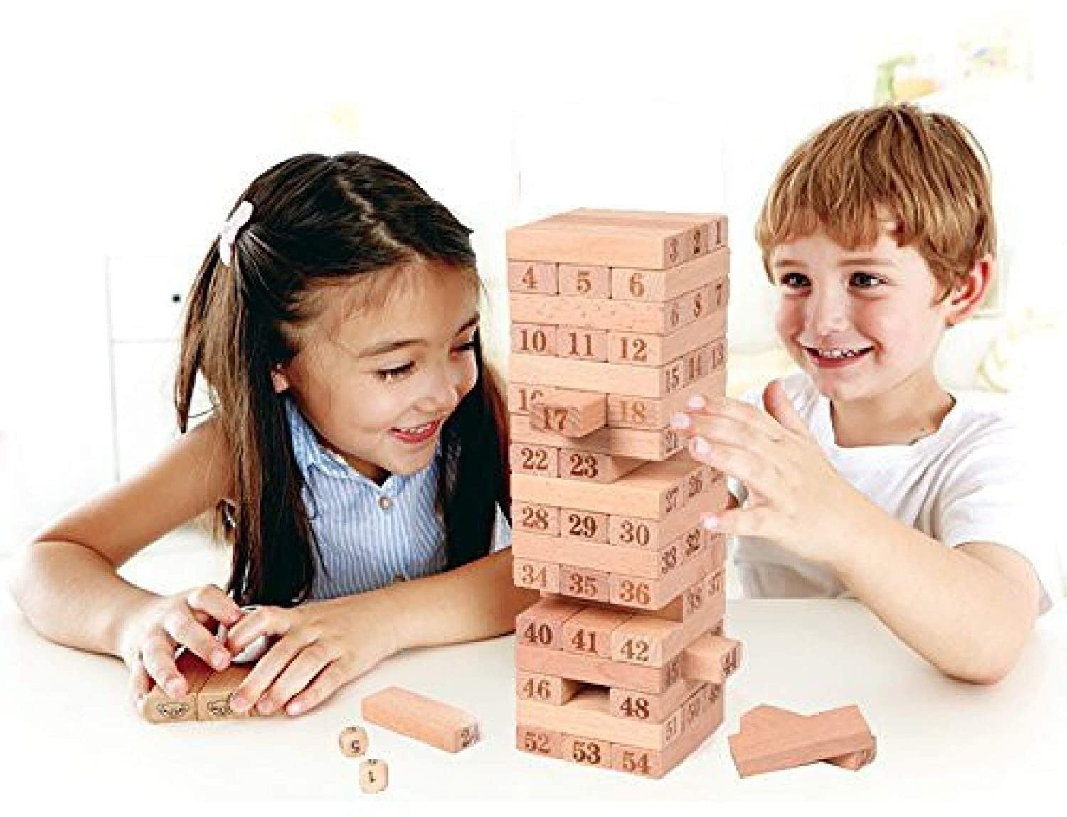 bp 3- It’s fun for all ages too, as some blocks from the bottom of the tower are pulled to make it taller who will make the tower fall, great for family game night; Only using one hand to remove blocks helps hand-eye coordination and self-control. Hold your breath as you remove a block and wait to see if the timber tower topples. 51 wooden blocks with 4 dices