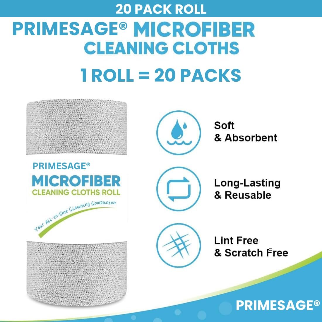 20-Pack Roll for Maximum Value: PrimeSage microfiber cleaning cloth roll includes 20 premium pieces for all your cleaning needs. Each microfiber cleaning cloth is pre-cut and ready to tackle surfaces big and small.