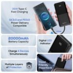 20,000mAh Capacity: Stay powered on the go. Its large capacity ensures multiple charges for your devices, making it perfect for everyday use/travel. It keeps you connected wherever you are.