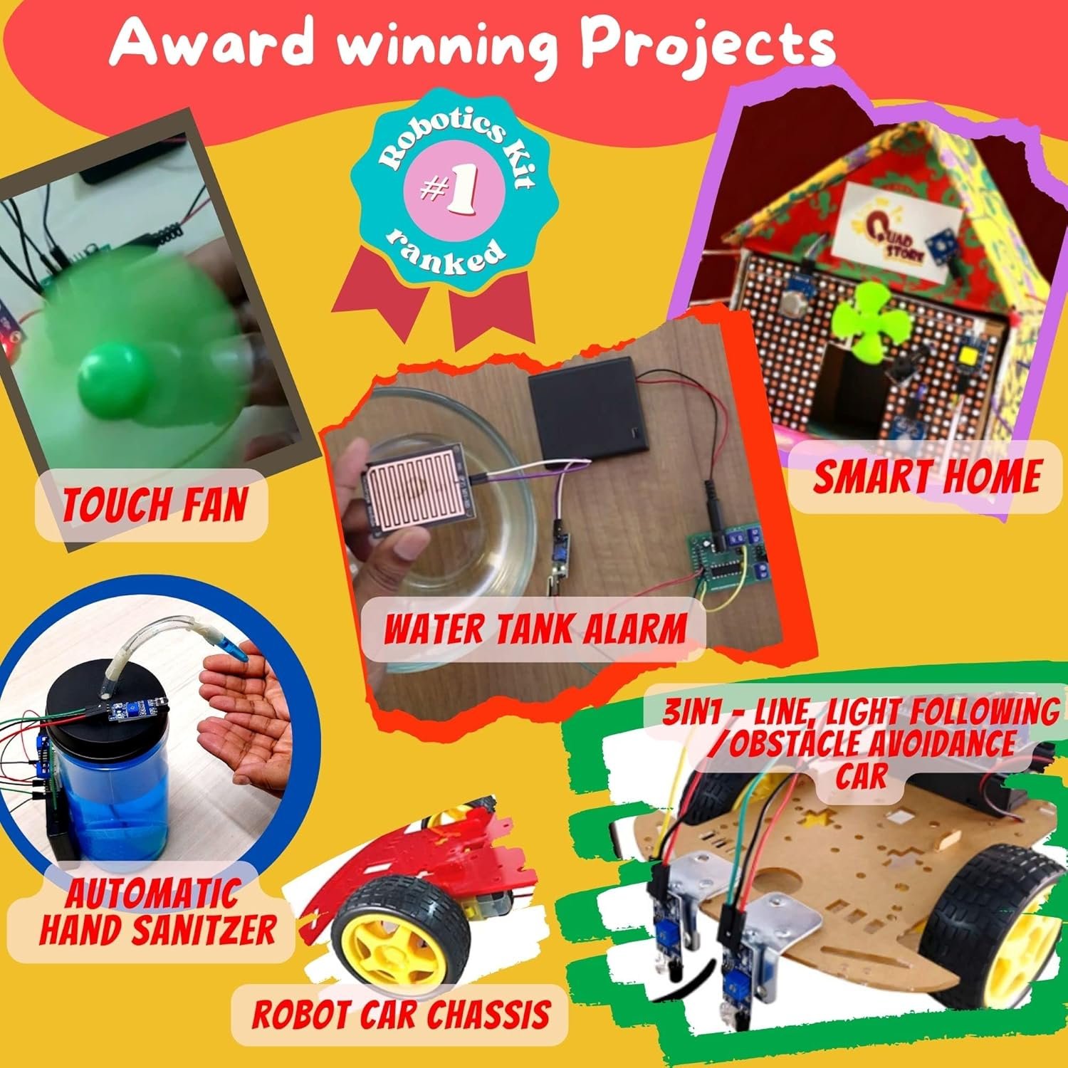 Bugler AlarmOverheat water tank alarmLaser security systemFire alarm, Smoke AlarmAutomatic water tap and many more interesting projects.