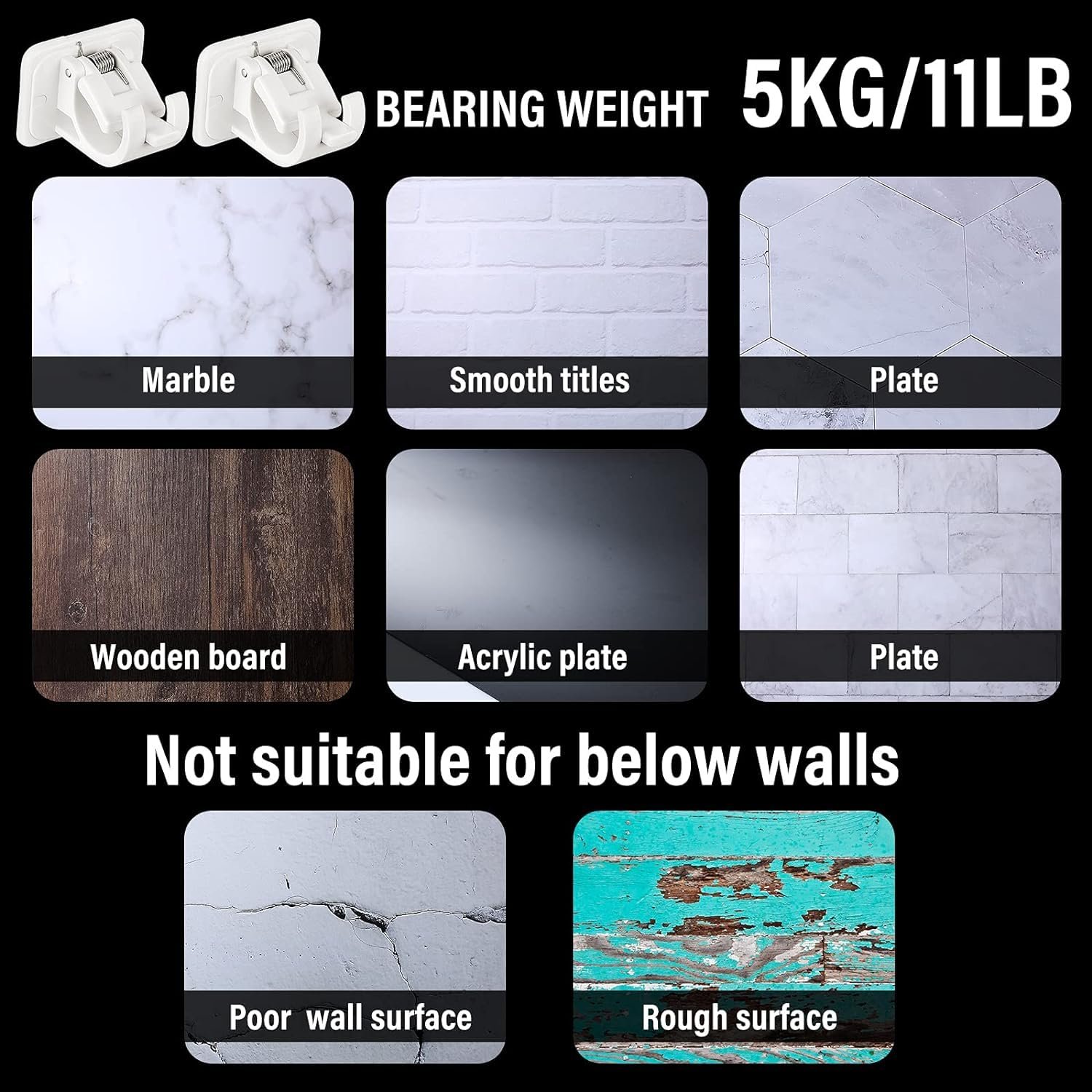 HEAVY DUTY&VERSATILITY :Our wall hooks have high strength sticky, and the stronger the wall, the more weight the adhesive hook can bear. These wall hooks heavy duty can be used as towel hooks, shower hooks,coat hooks, ceiling hooks, outdoor hooks, bird feeder hooks, key hooks, plant hooks, picture hooks and gardening tools