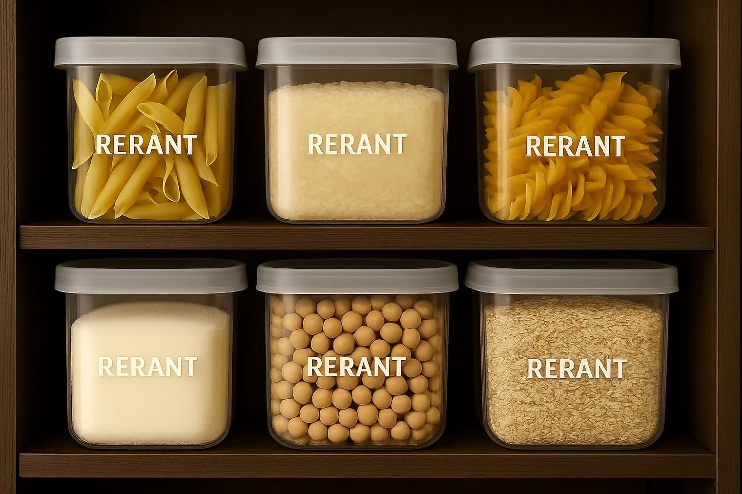Engineered for aesthetic refinement and optimal usability, these containers reflect a sleek, minimalist design tailored for the modern kitchen. The uniform rectangular profile ensures seamless integration into any storage space while the clear body with bold “RERANT” branding offers immediate content visibility without compromising elegance.