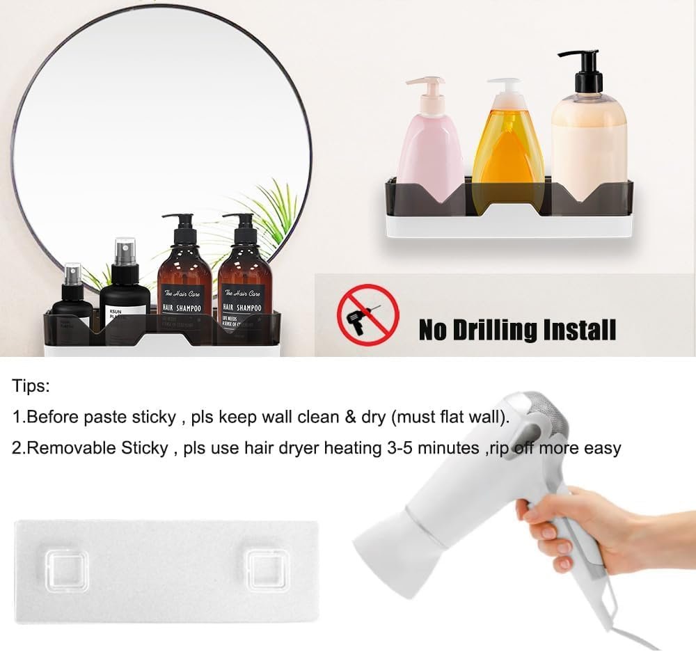 Bathroom Shelf for Wall Adhesive: REWOP bathroom corner shelf for wall is designed to adhere securely to any surface. This self adhesive bathroom shelf offers a convenient solution for organizing toiletries, transforming your bathroom into a clutter-free zone.