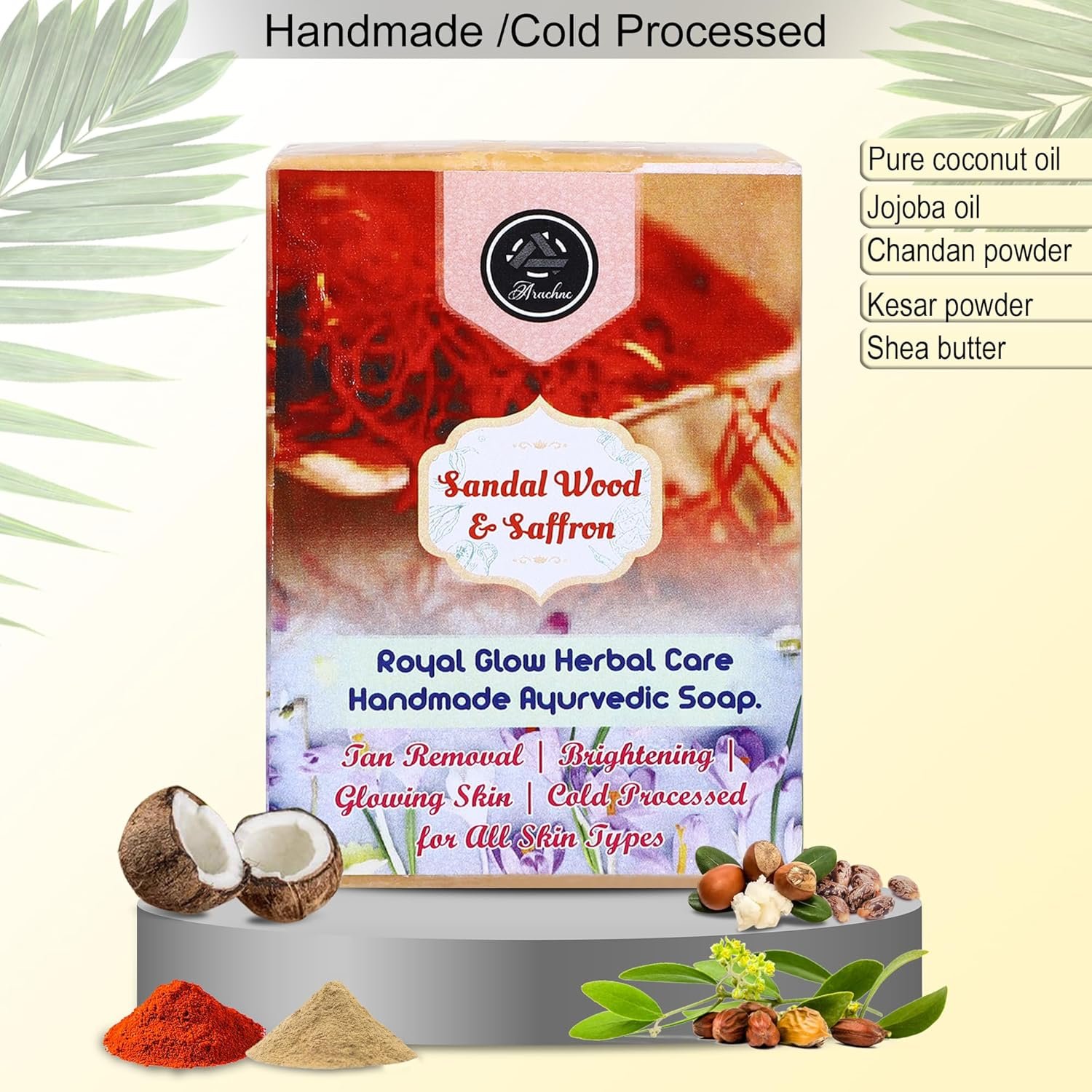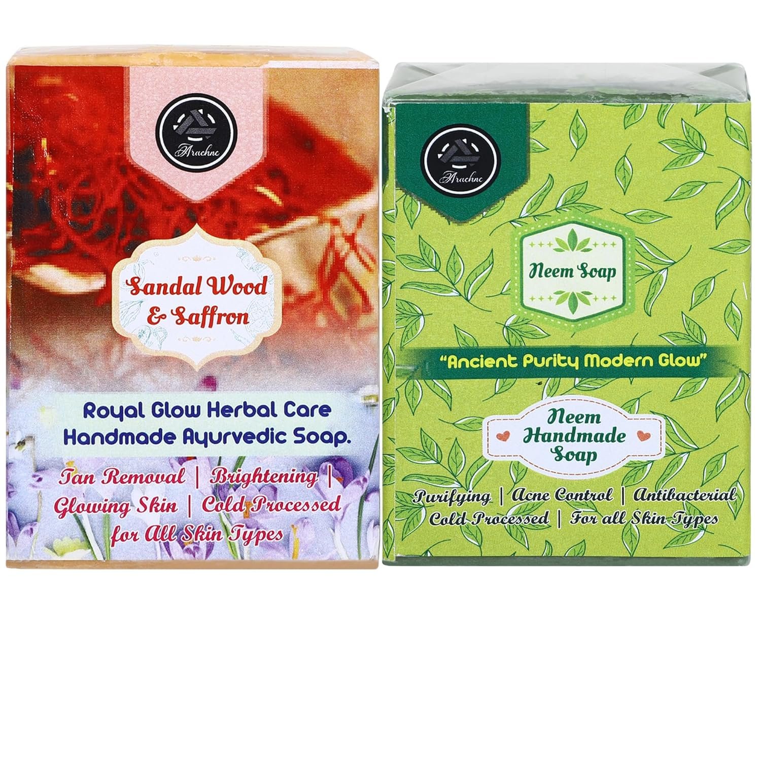 Royal Glow Herbal Care Handmade Ayurvedic Soap Set, Sandal Wood & Saffron and Neem, Cold Processed, For All Skin Types 100g combo of 2)