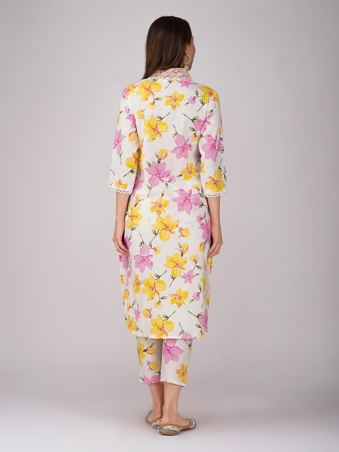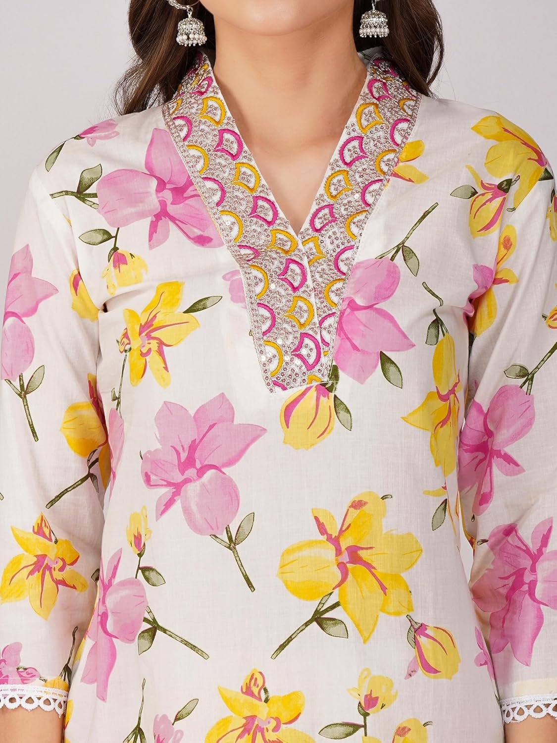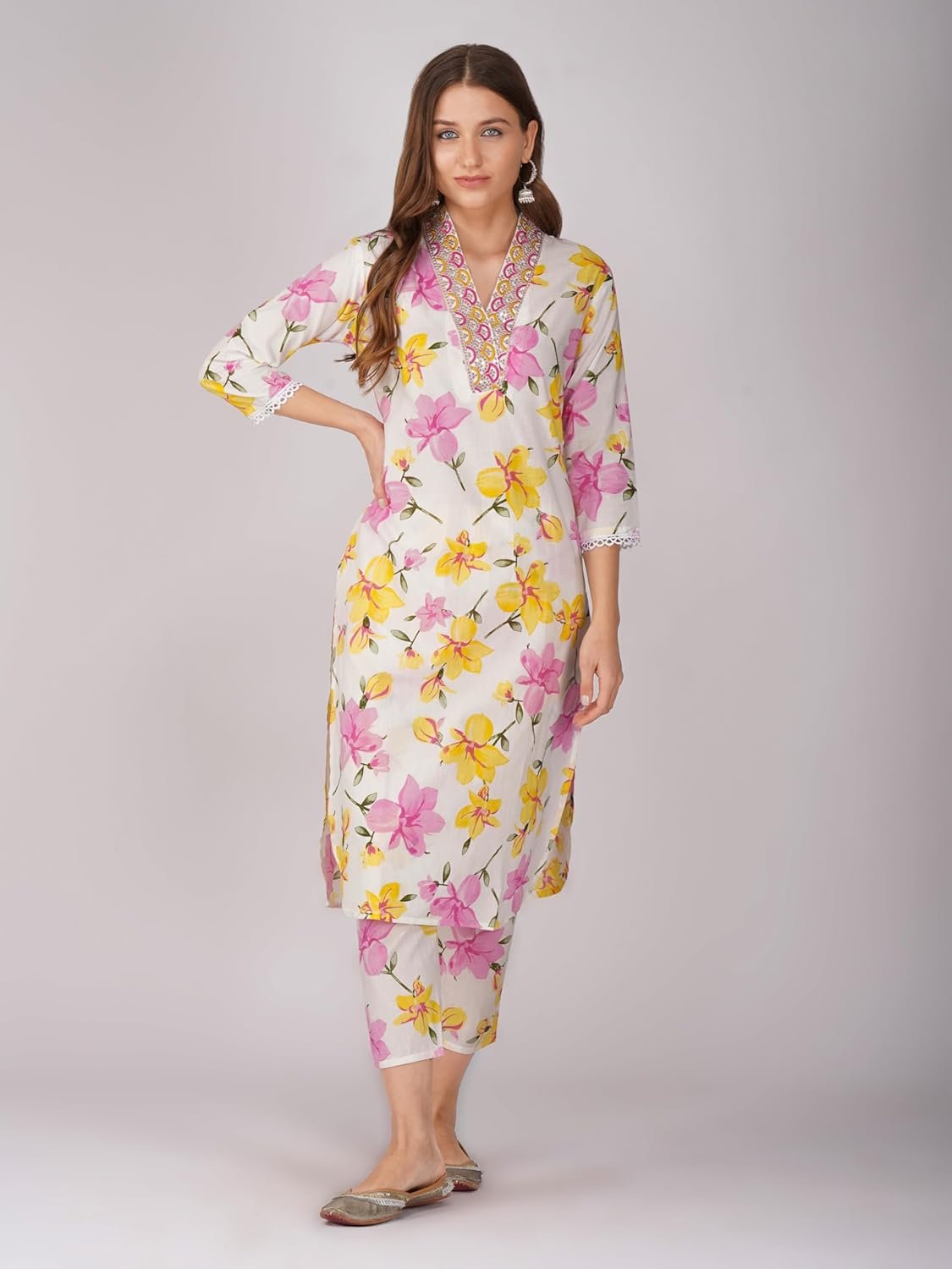 Rytras brings to you this beautiful Straight Kurta With Pant which is made from Cotton fabric with beautiful print all over.This kurta set has been designed keeping in mind the latest trends in contemporary casual fashion. The dress combines ethnic with the fashion of today and makes you stand out among others when you adorn it.