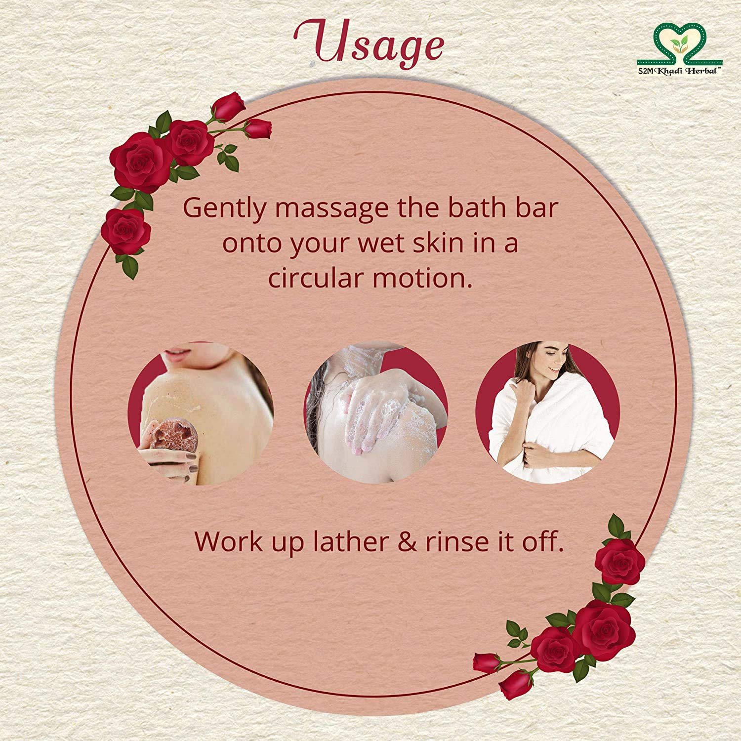 S2M Khadi Herbal Soap Helps to fight acne, pimples, and rashes, Rejuvenates dull skin and Slows down signs of ageing. It also Removes dark spots, fine lines and wrinkles. So Keep Shining with S2M Khadi Herbal Soap!